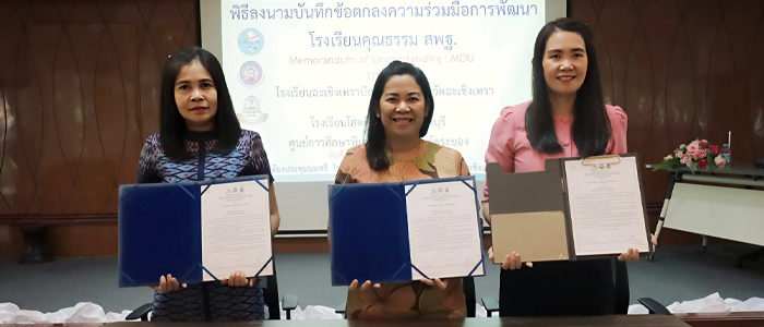 วันศุกร์ที่ 7 มิถุนายน พ.ศ. 2567 โรงเรียน.ฉะเชิงเทราปัญญานุกูล จังหวัดฉะเชิงเทรา บันทึกข้อตกลงความร่วมมือ (MOU) เครือข่ายการขับเคลื่อนและร่วมพัฒนาโรงเรียนคุณธรรม สพฐ. กับ โรงเรียนโสตศึกษาจังหวัดชลบุรี และศูนย์การศึกษาพิเศษ ประจำจังหวัดระยอง ณ ห้องประชุมนนทรี โรงเรียน.ฉะเชิงเทราปัญญานุกูล โดยมีวัตถุประสงค์ดังนี้