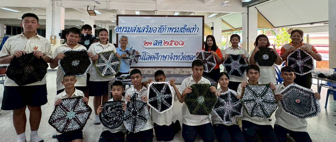 คณะครูอาชีพทอพรมเช็ดเท้า รับเชิญเป็นวิทยากรอบรมให้ความรู้ ณ โรงเรียนโสตศึกษาจังหวัดชลบุรี