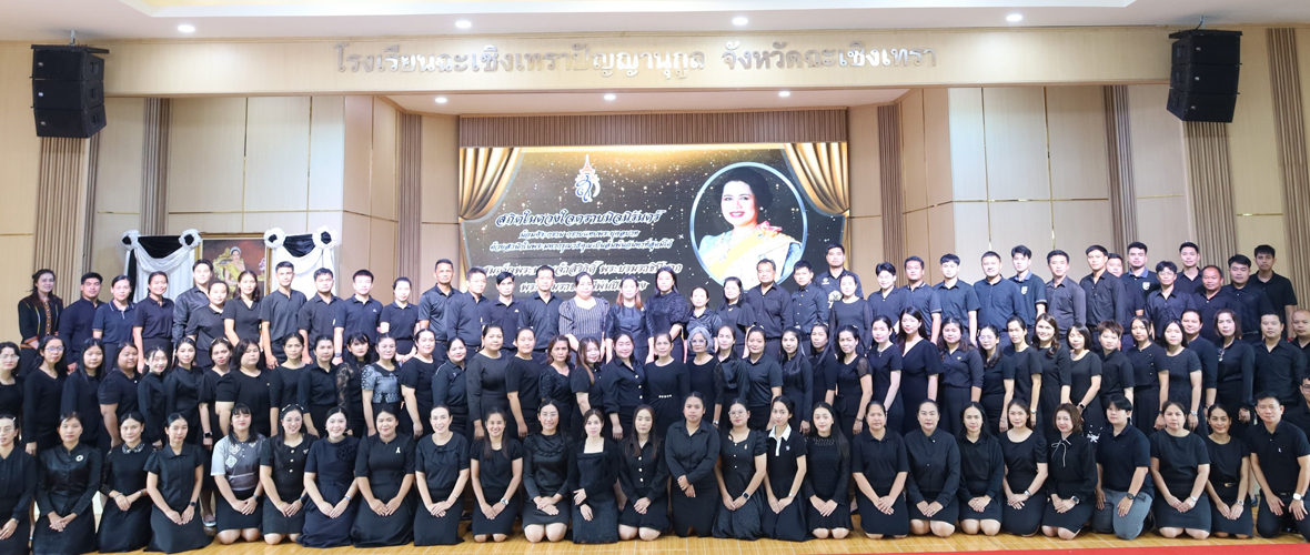 วันพุธ ที่ 5 พฤศจิกายน พ.ศ. 2568 ผู้บริหาร คณะครู และนักเรียนโรงเรียนฉะเชิงเทราปัญญานุกูล จังหวัดฉะเชิงเทรา ร่วมพิธีน้อมรำลึกในพระมหากรุณาธิคุณ และถวายความอาลัย พระผู้เสด็จสู่สวรรคาลัย สมเด็จพระนางเจ้าสิริกิติ์ พระบรมราชินีนาถ พระบรมราชชนนีพันปีหลวง โดยมี นางเงาแข เดือดขุนทด ผู้อำนวยการโรงเรียน เป็นประธานในพิธี จุดธูปเทียนบูชาพระรัตนตรัย จุดเครื่องทองน้อย กล่าวน้อมรำลึกในพระมหากรุณาธิคุณในพระมหากรุณาธิคุณอันหาที่สุดมิได้ จากนั้นประธานในพิธีและผู้ร่วมพิธียืนสงบนิ่งน้อมรำลึกในพระมหากรุณาธิคุณ เป็นเวลา 1 นาที เบื้องหน้าพระบรมฉายาลักษณ์ สมเด็จพระนางเจ้าสิริกิติ์ พระบรมราชินีนาถ พระบรมราชชนนีพันปีหลวง ณ หอประชุมแก้วกัลยา โรงเรียนฉะเชิงเทราปัญญานุกูล จังหวัดฉะเชิงเทรา