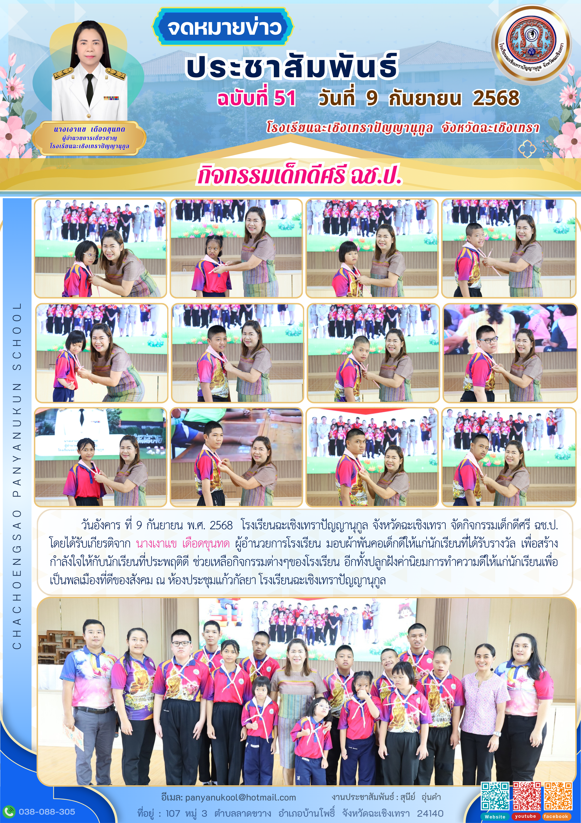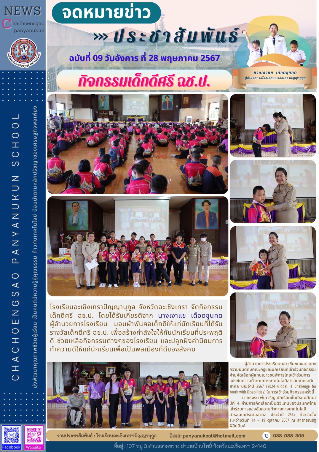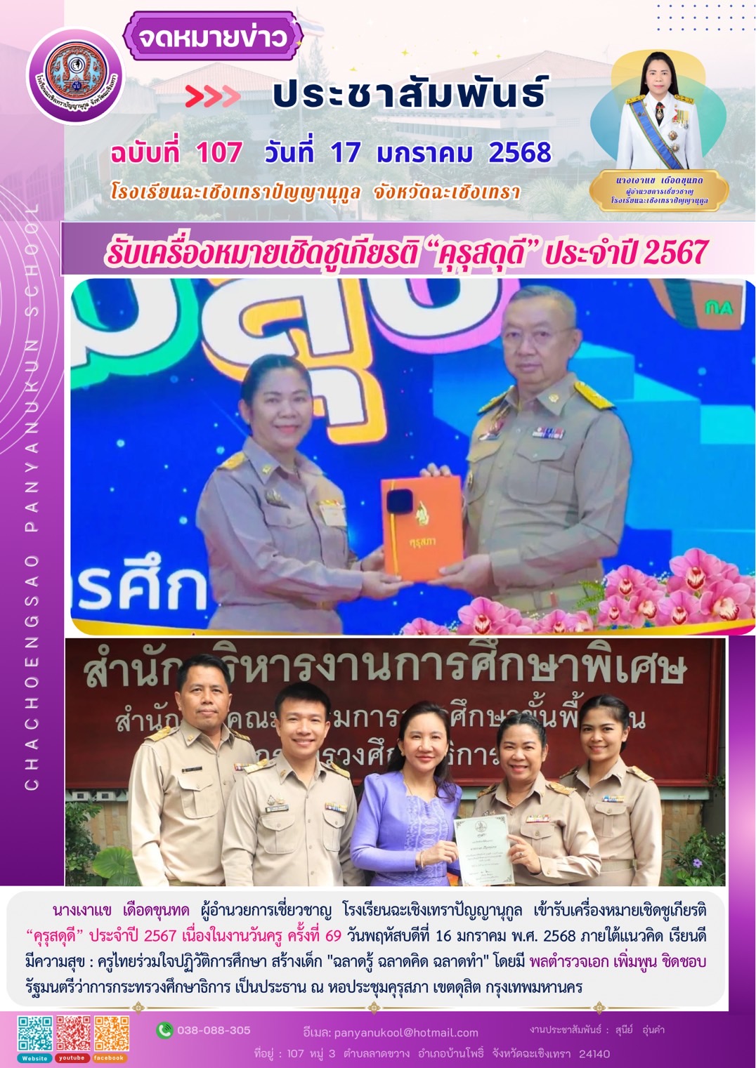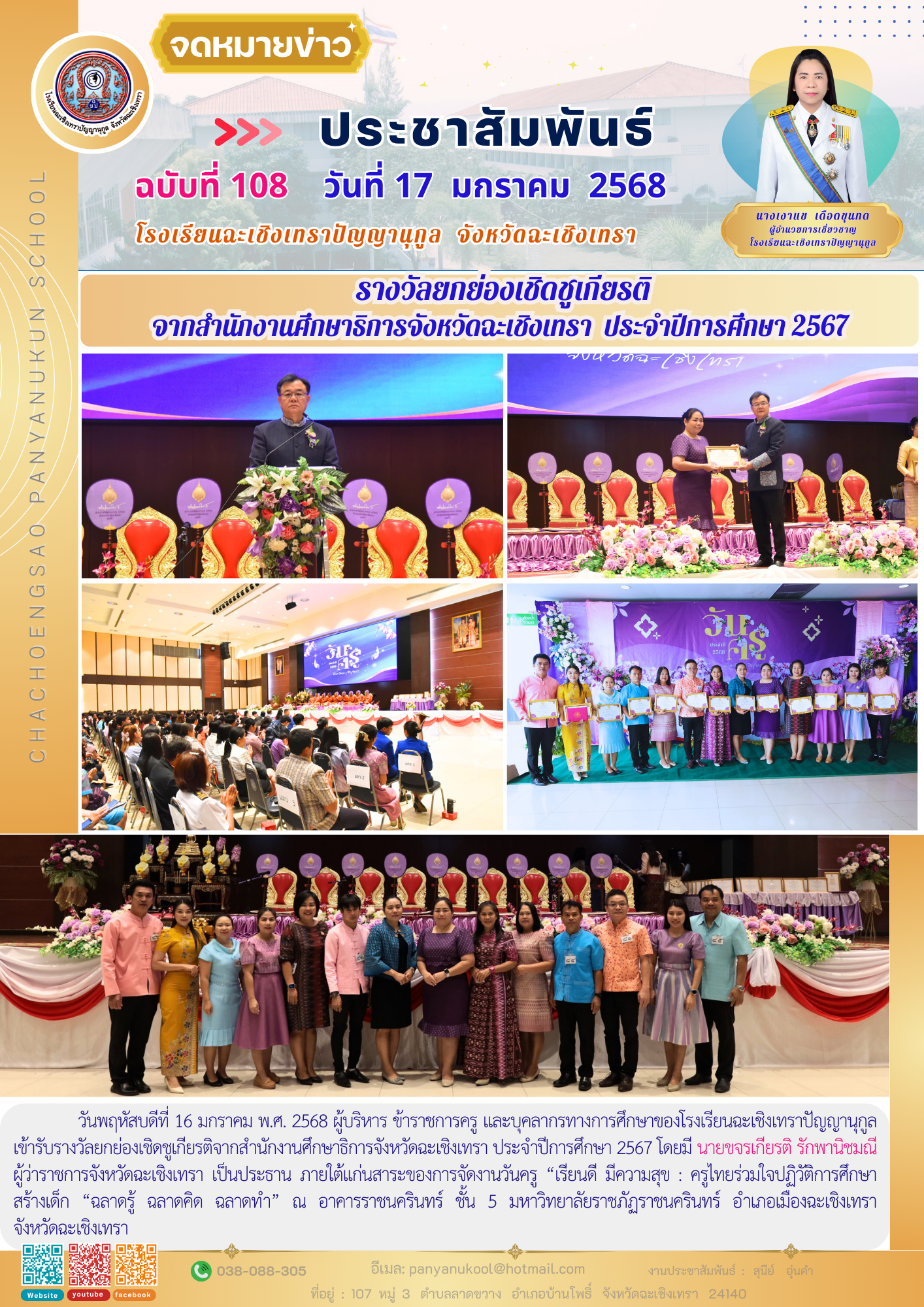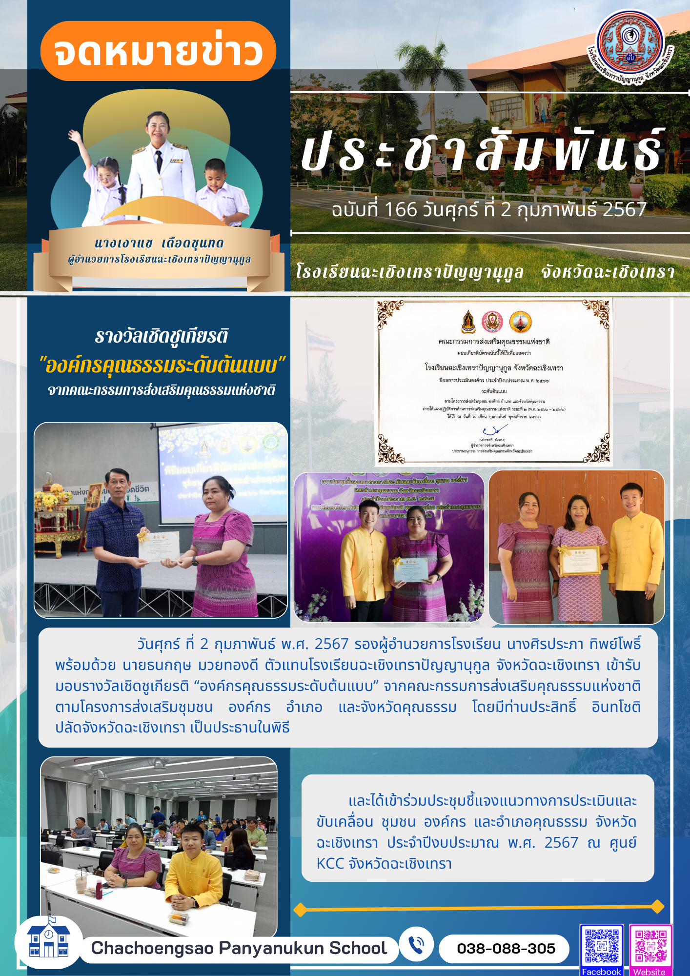 โรงเรียนฉะเชิงเทราปัญญานุกูล จังหวัดฉะเชิงเทรา ได้รับการคัดเลือกจากกระทรวงศึกษาธิการ