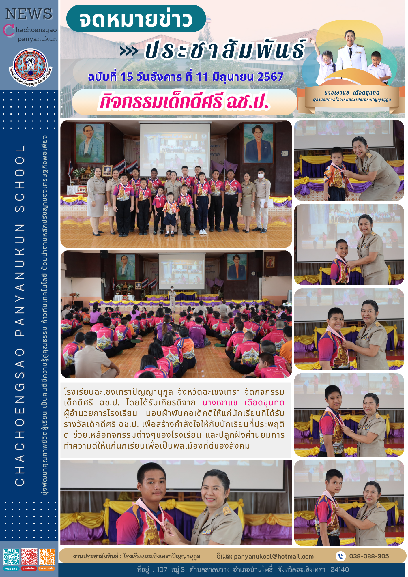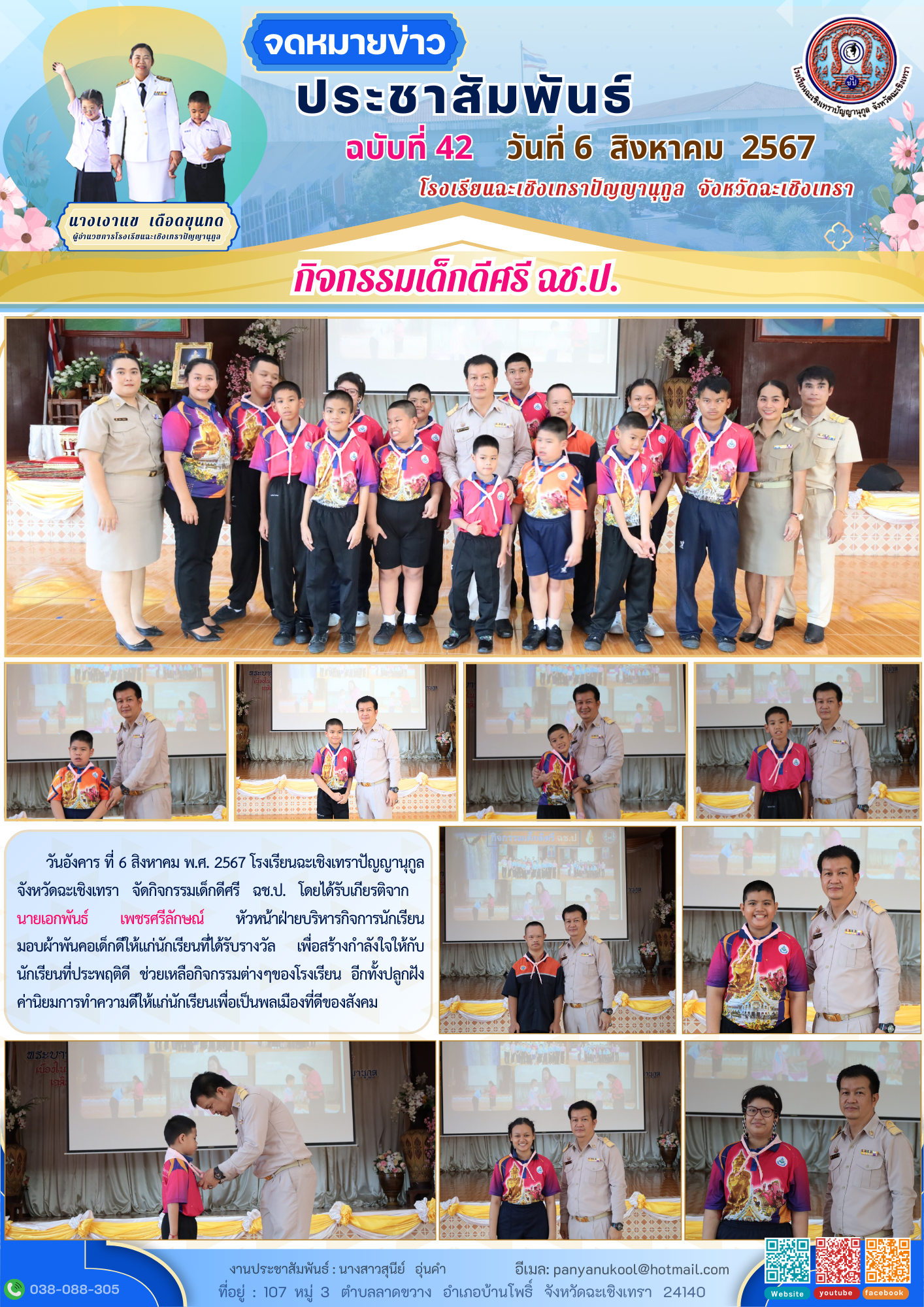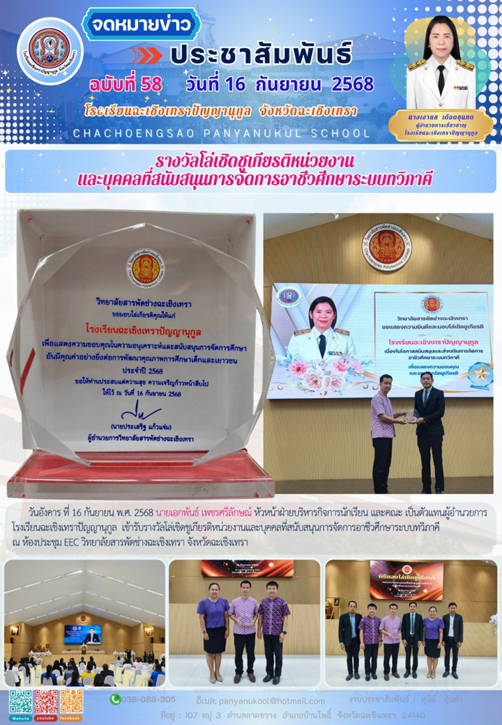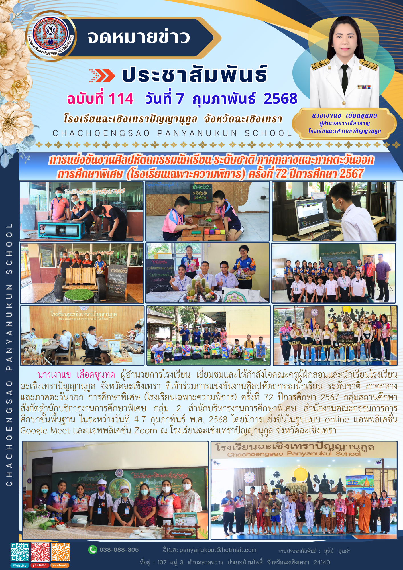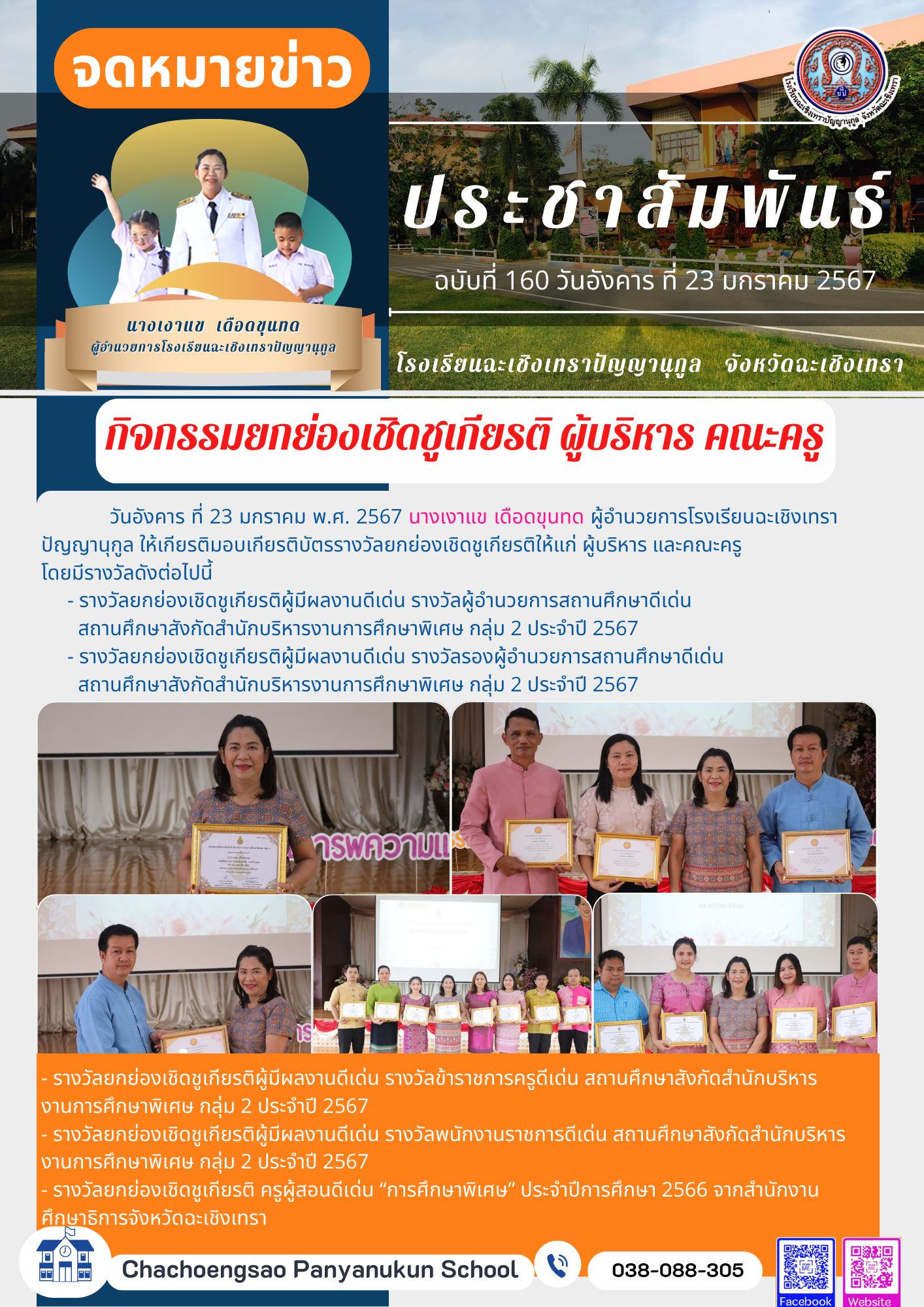 โรงเรียนฉะเชิงเทราปัญญานุกูล จังหวัดฉะเชิงเทรา ได้รับการคัดเลือกจากกระทรวงศึกษาธิการ