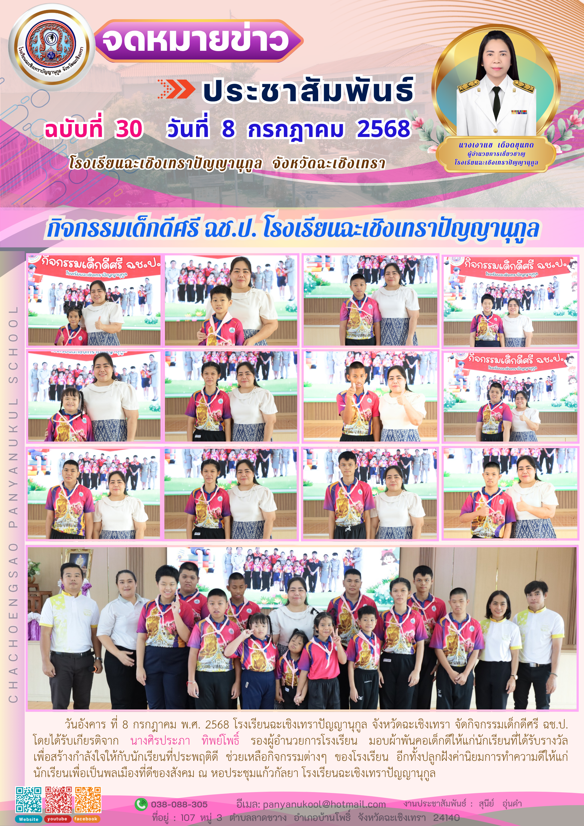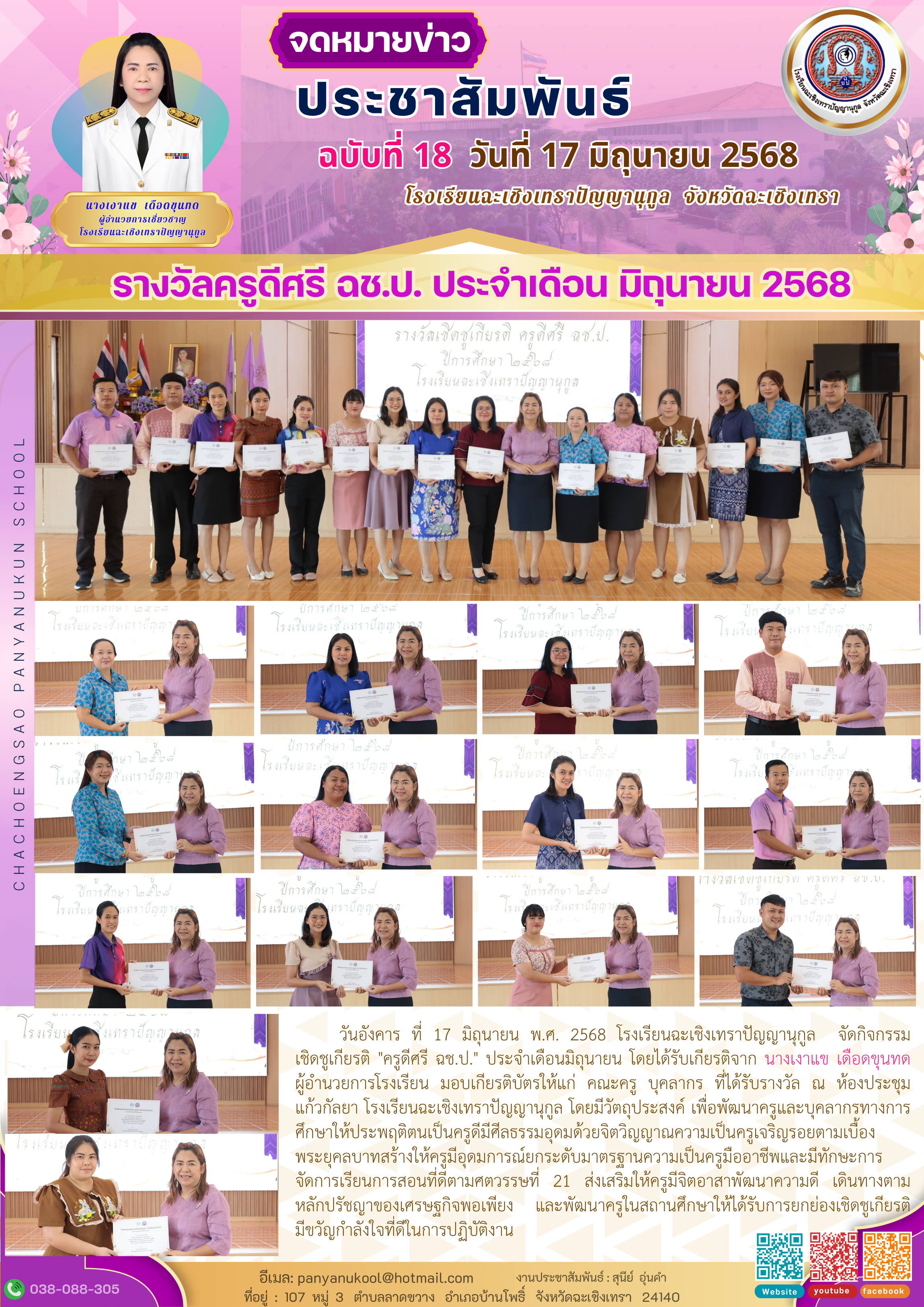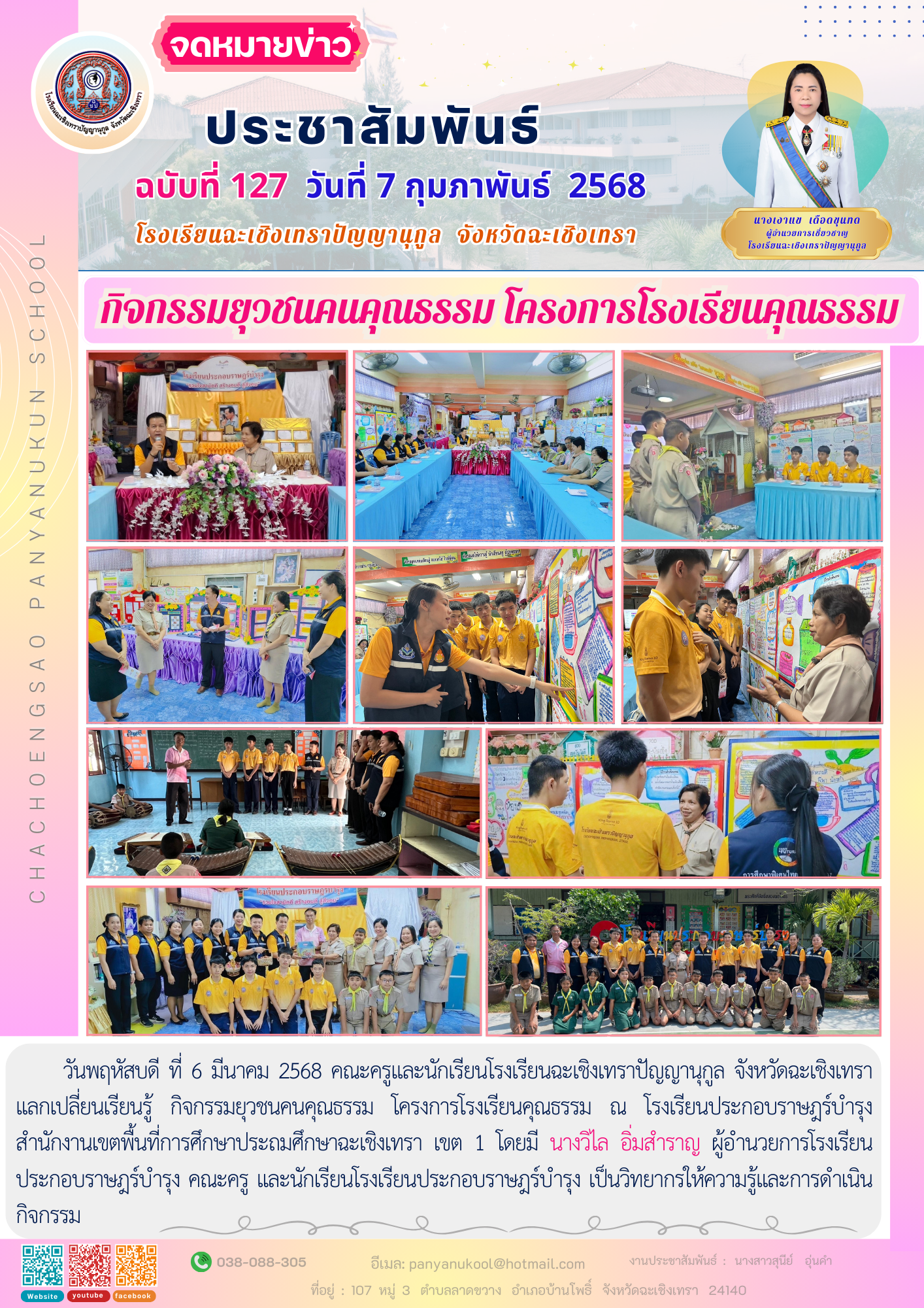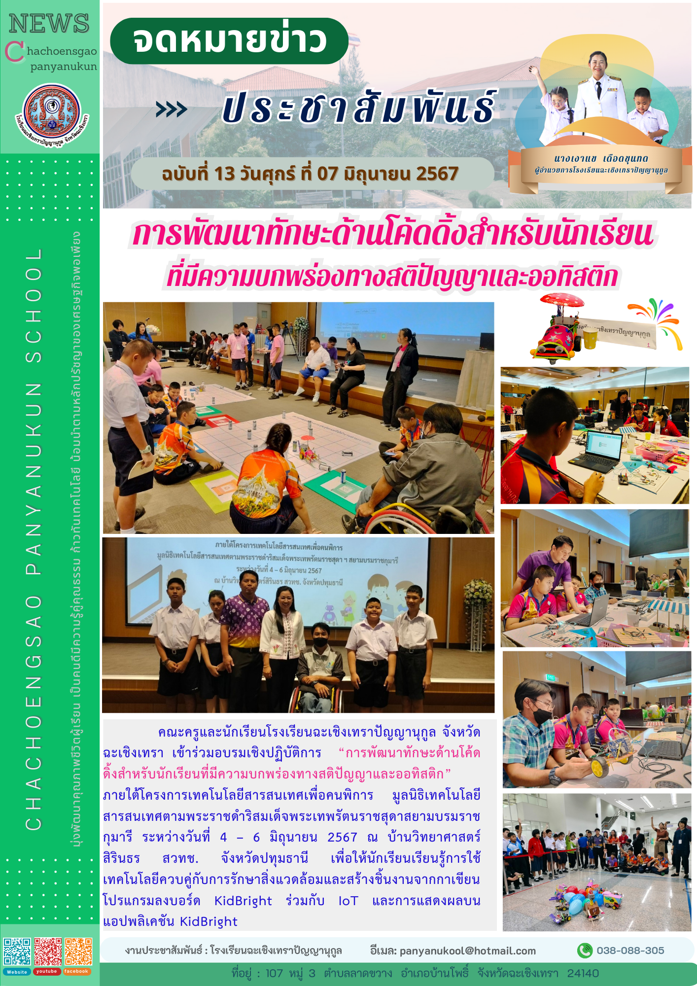 โรงเรียนฉะเชิงเทราปัญญานุกูล จังหวัดฉะเชิงเทรา ได้รับการคัดเลือกจากกระทรวงศึกษาธิการ
