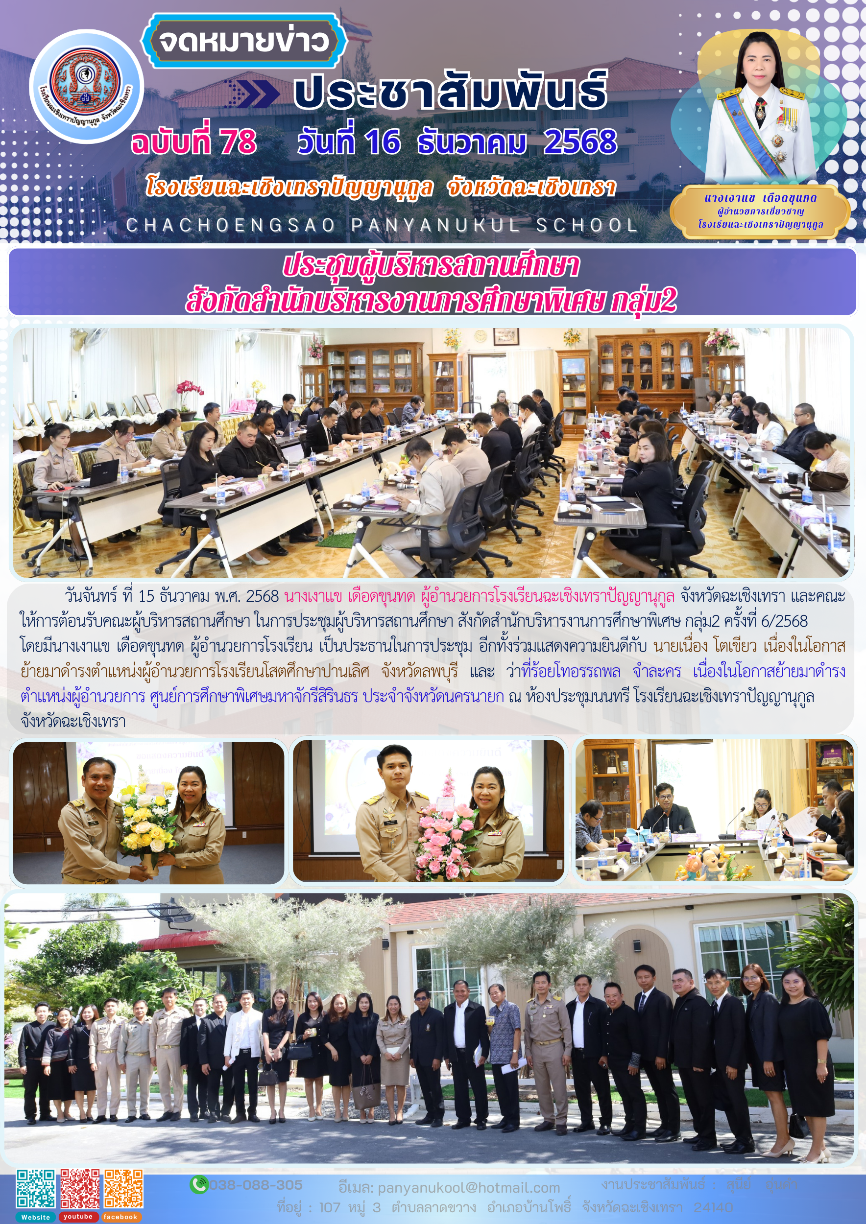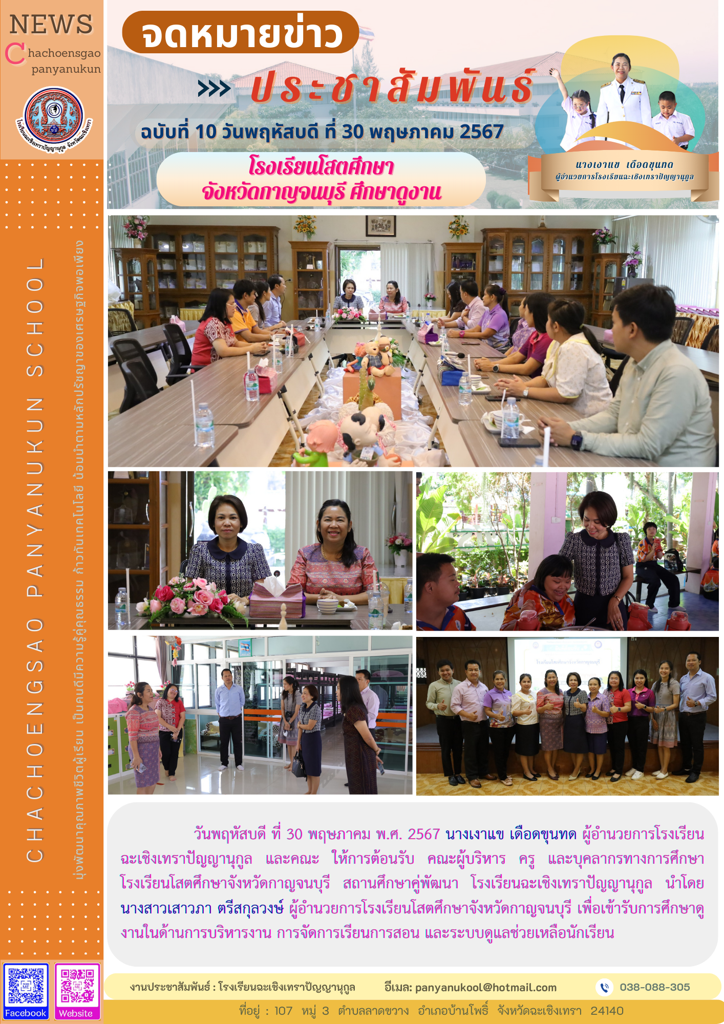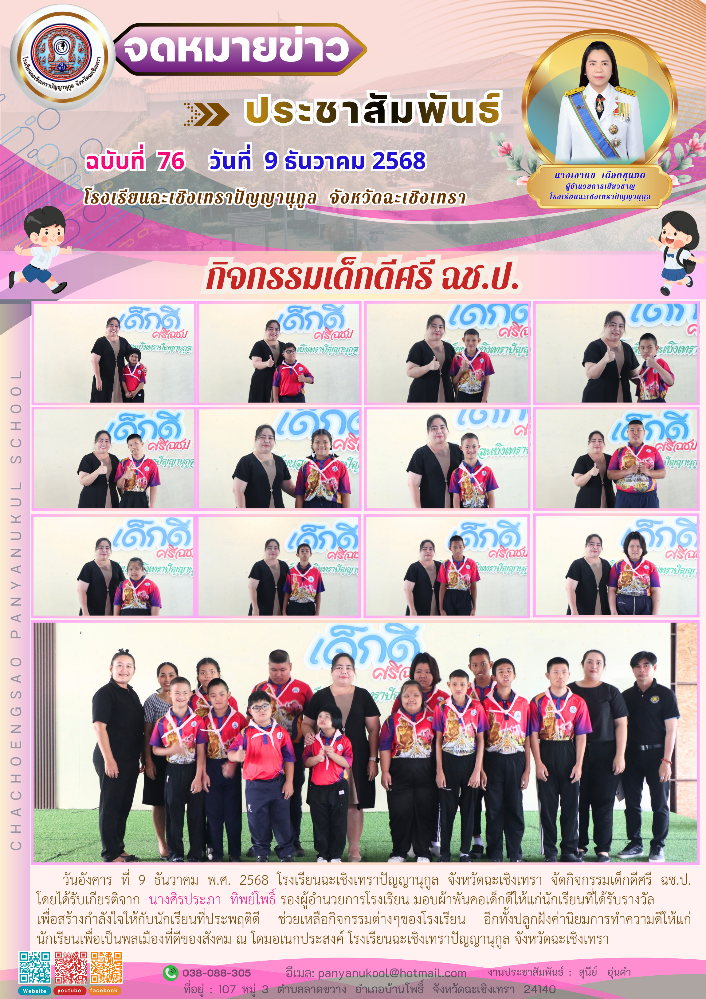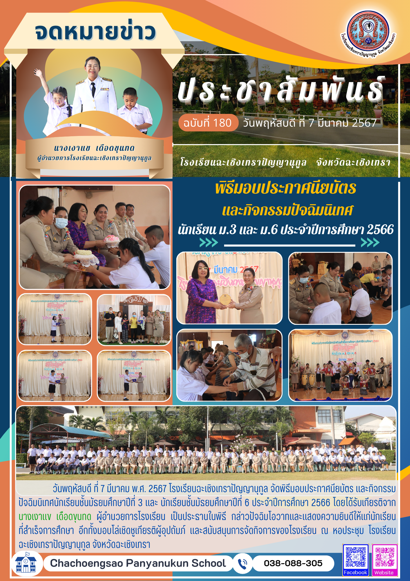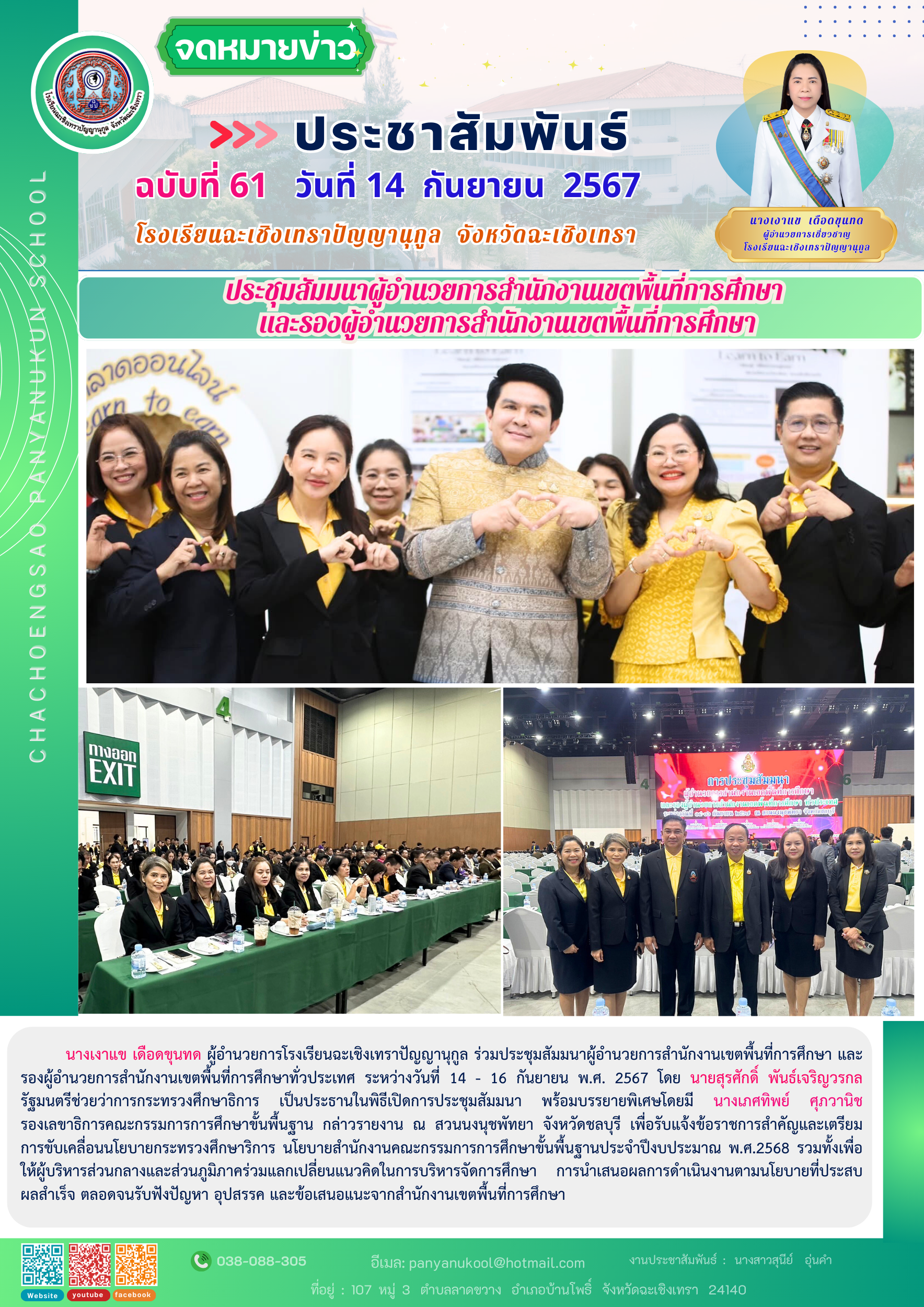 โรงเรียนฉะเชิงเทราปัญญานุกูล จังหวัดฉะเชิงเทรา ได้รับการคัดเลือกจากกระทรวงศึกษาธิการ