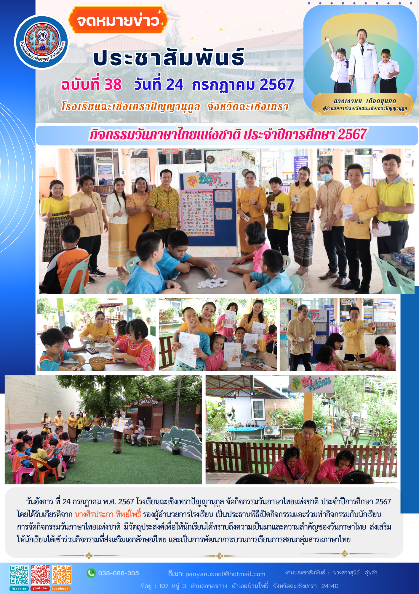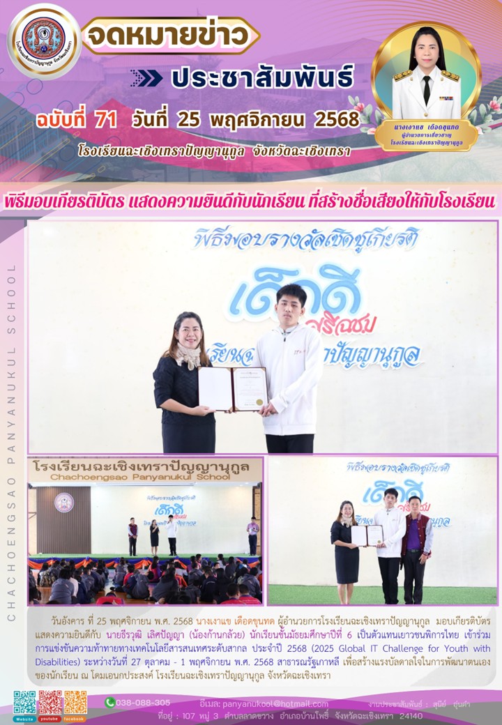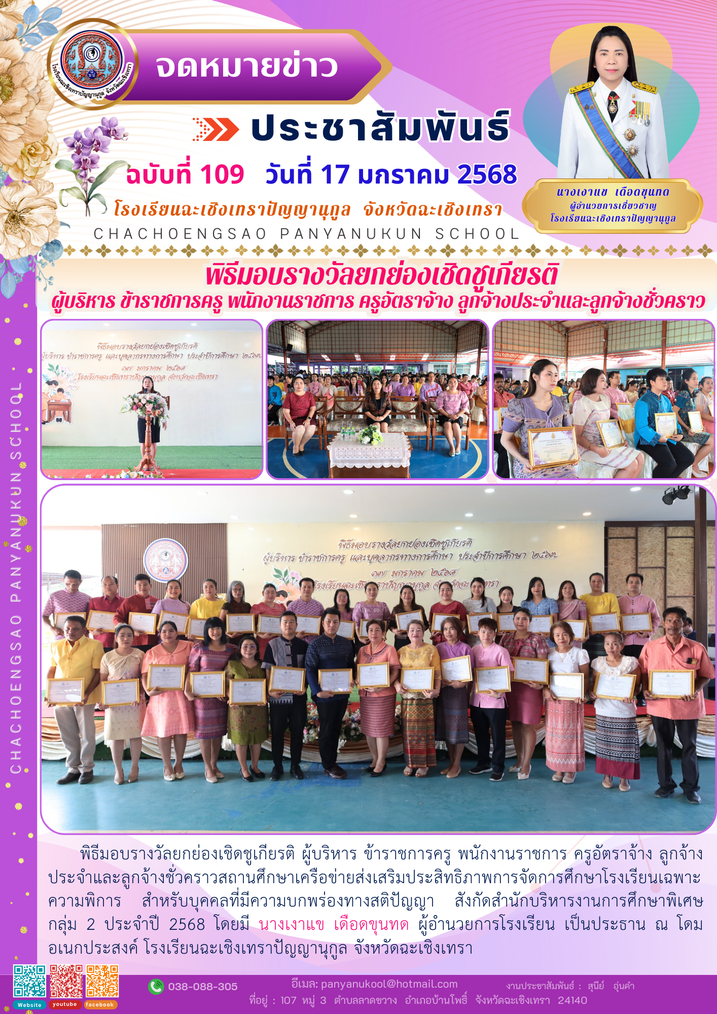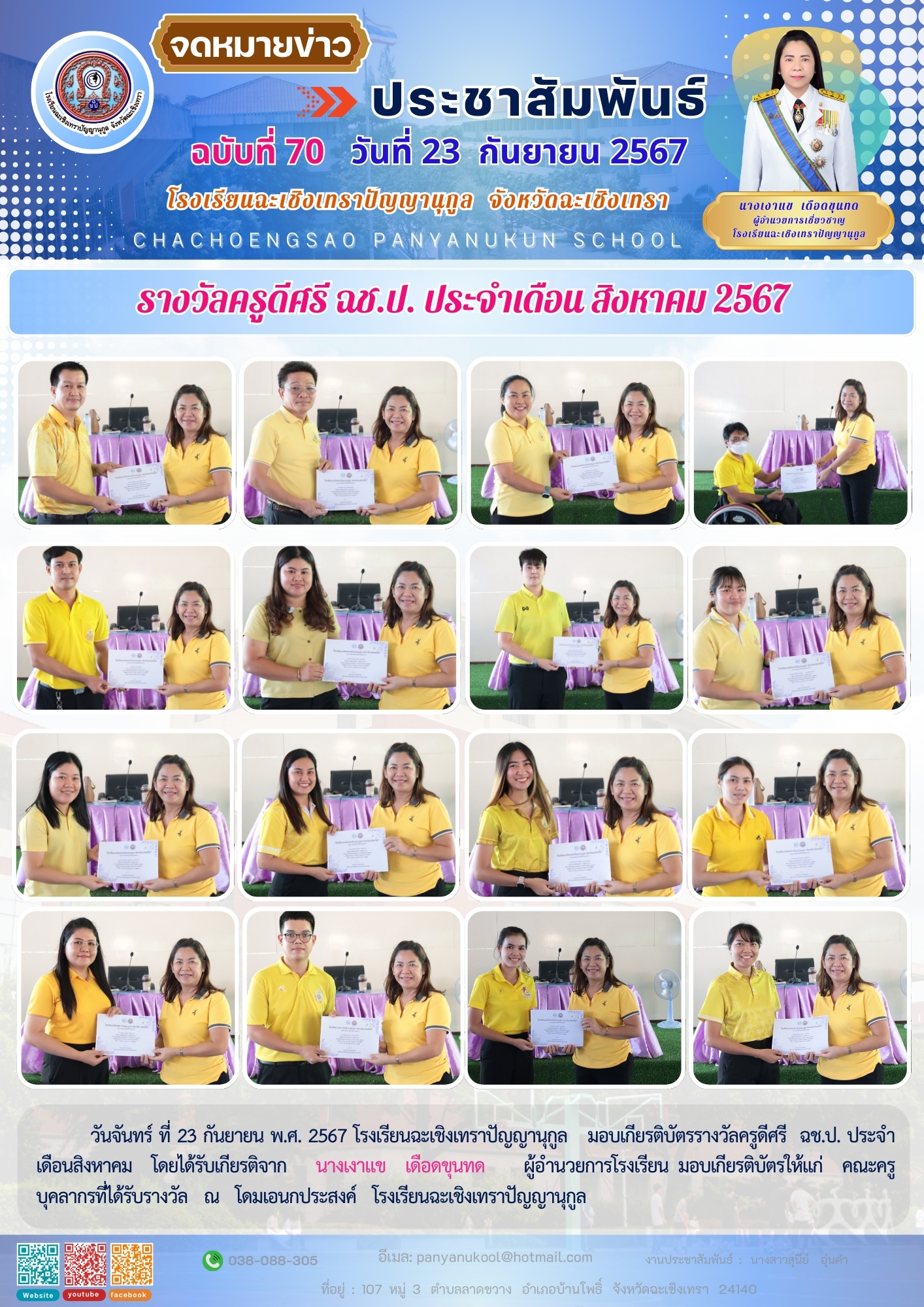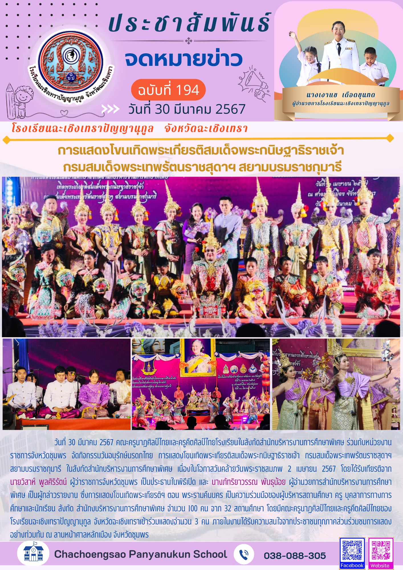 โรงเรียนฉะเชิงเทราปัญญานุกูล จังหวัดฉะเชิงเทรา ได้รับการคัดเลือกจากกระทรวงศึกษาธิการ