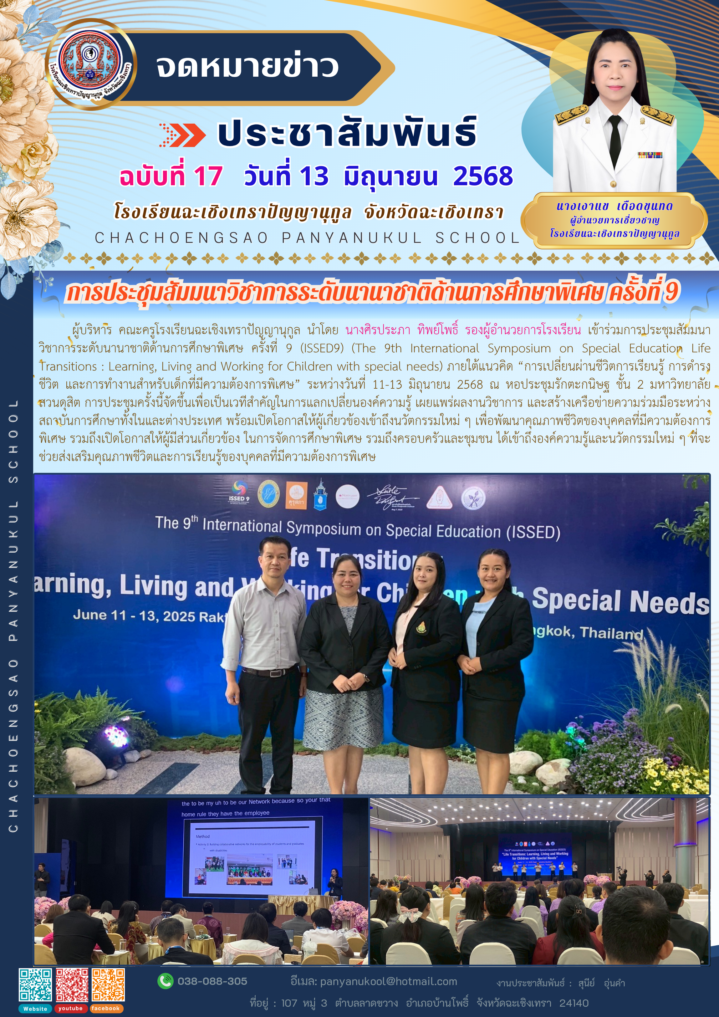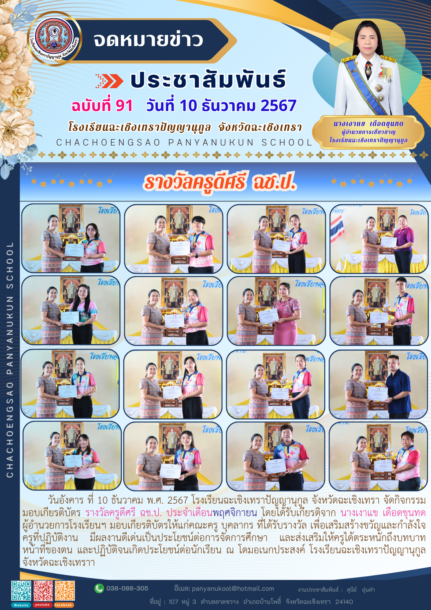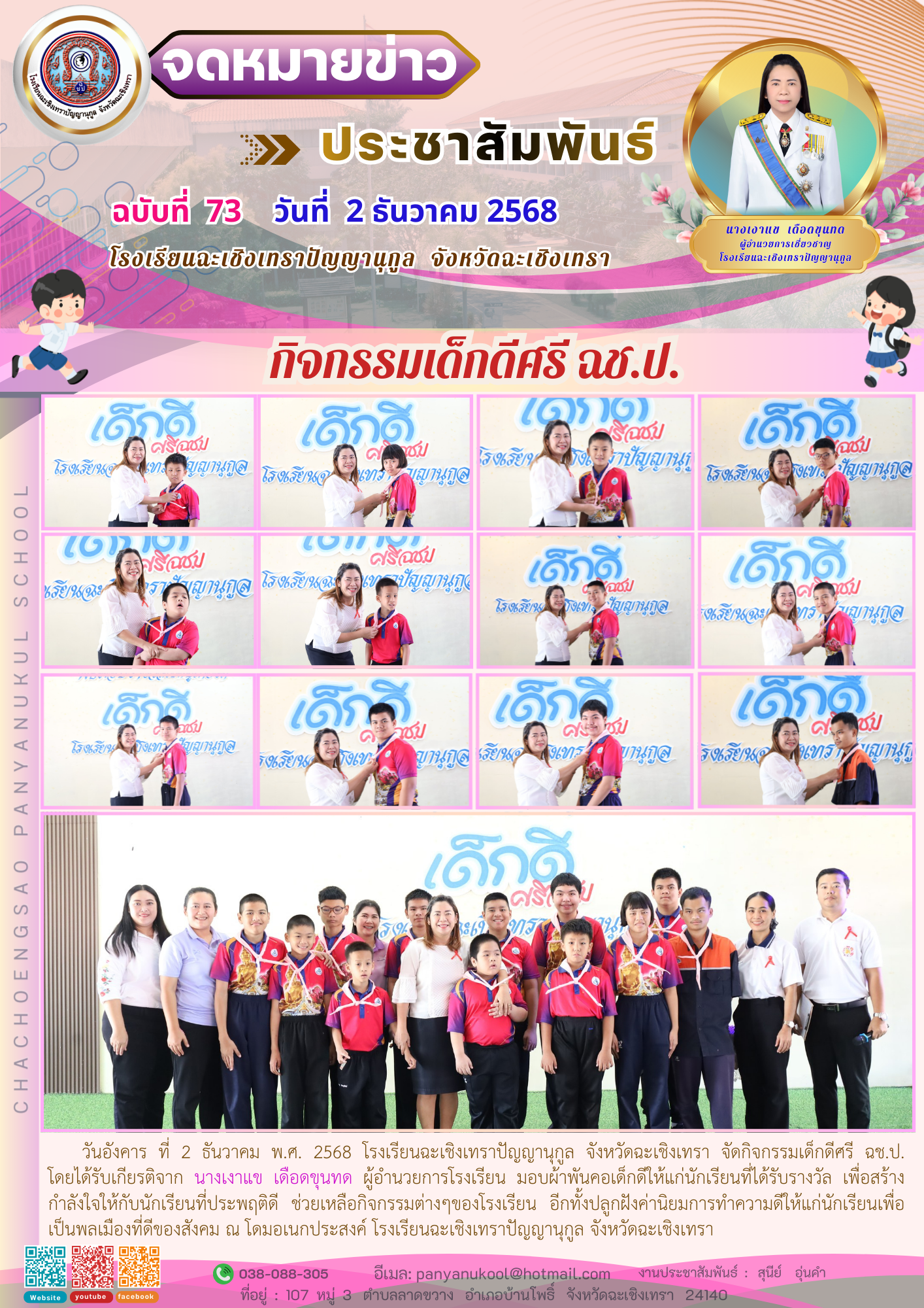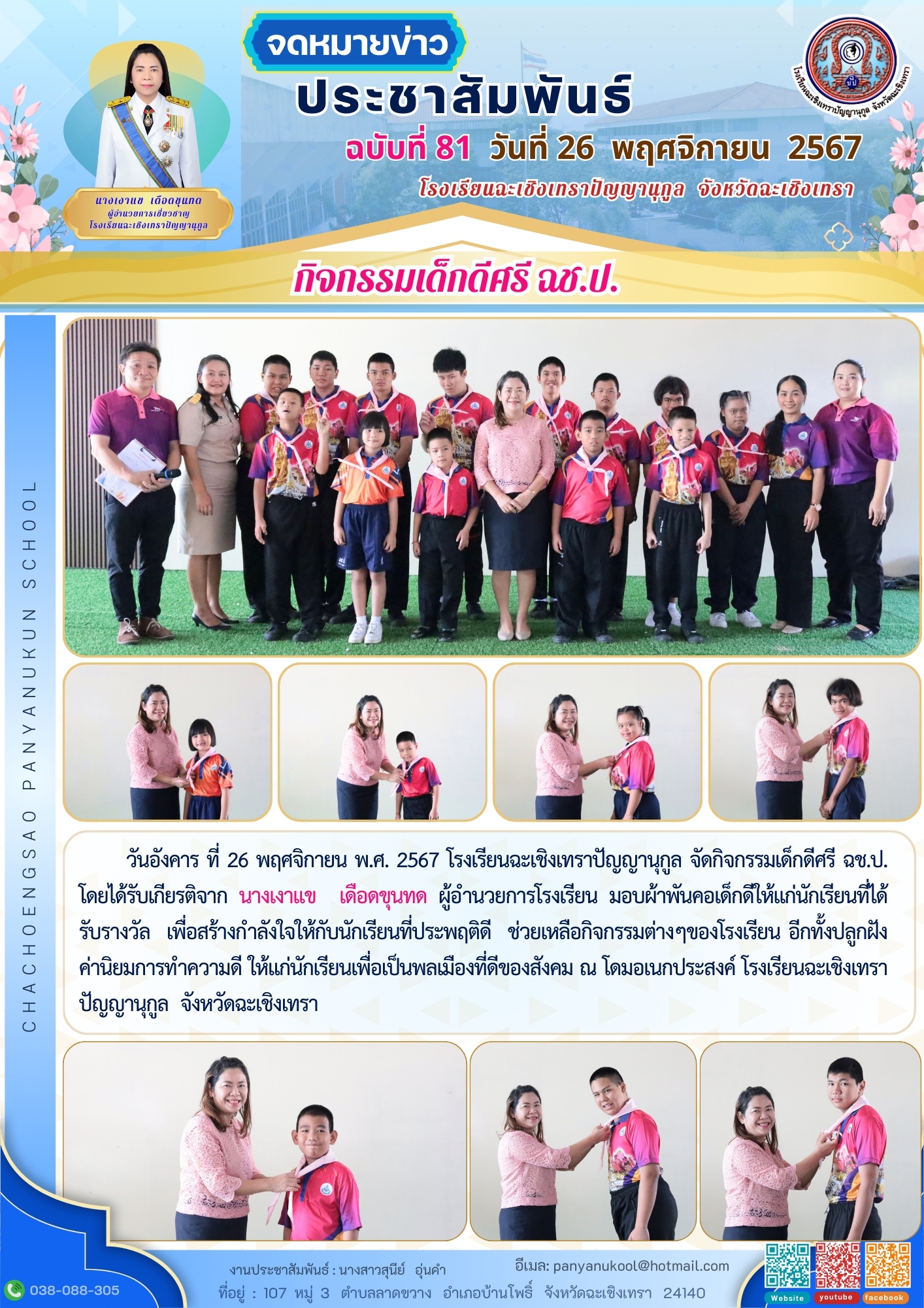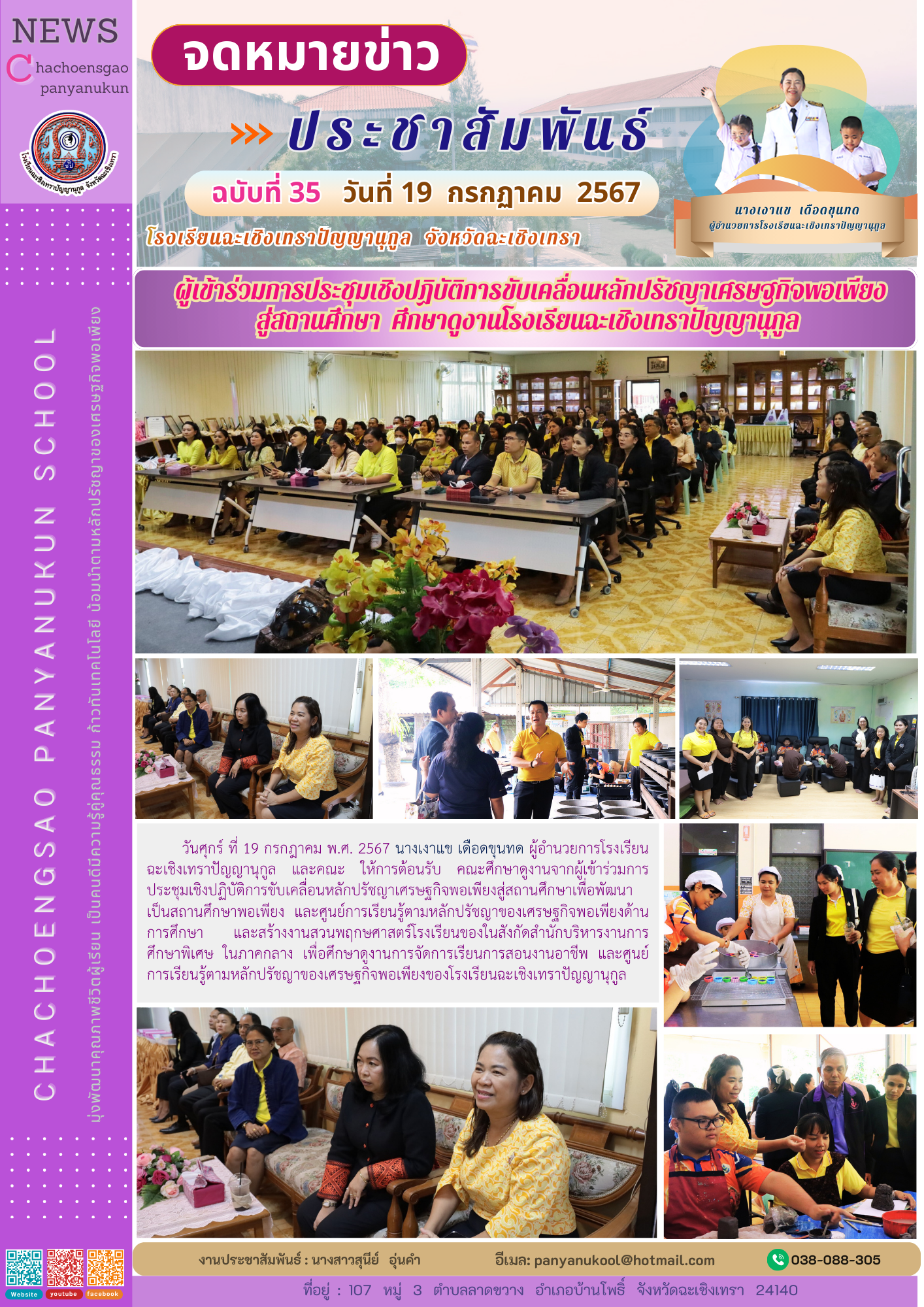โรงเรียนฉะเชิงเทราปัญญานุกูล จังหวัดฉะเชิงเทรา ได้รับการคัดเลือกจากกระทรวงศึกษาธิการ