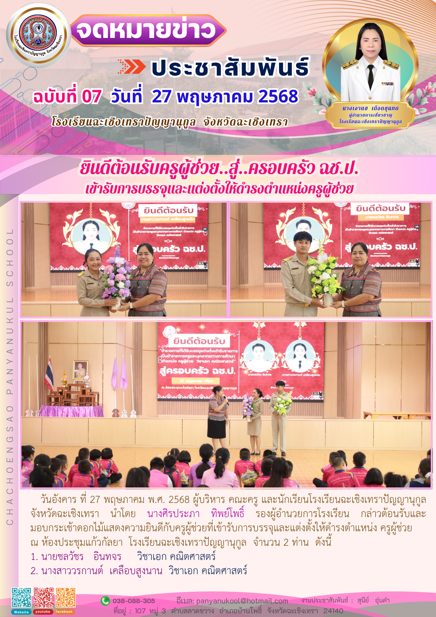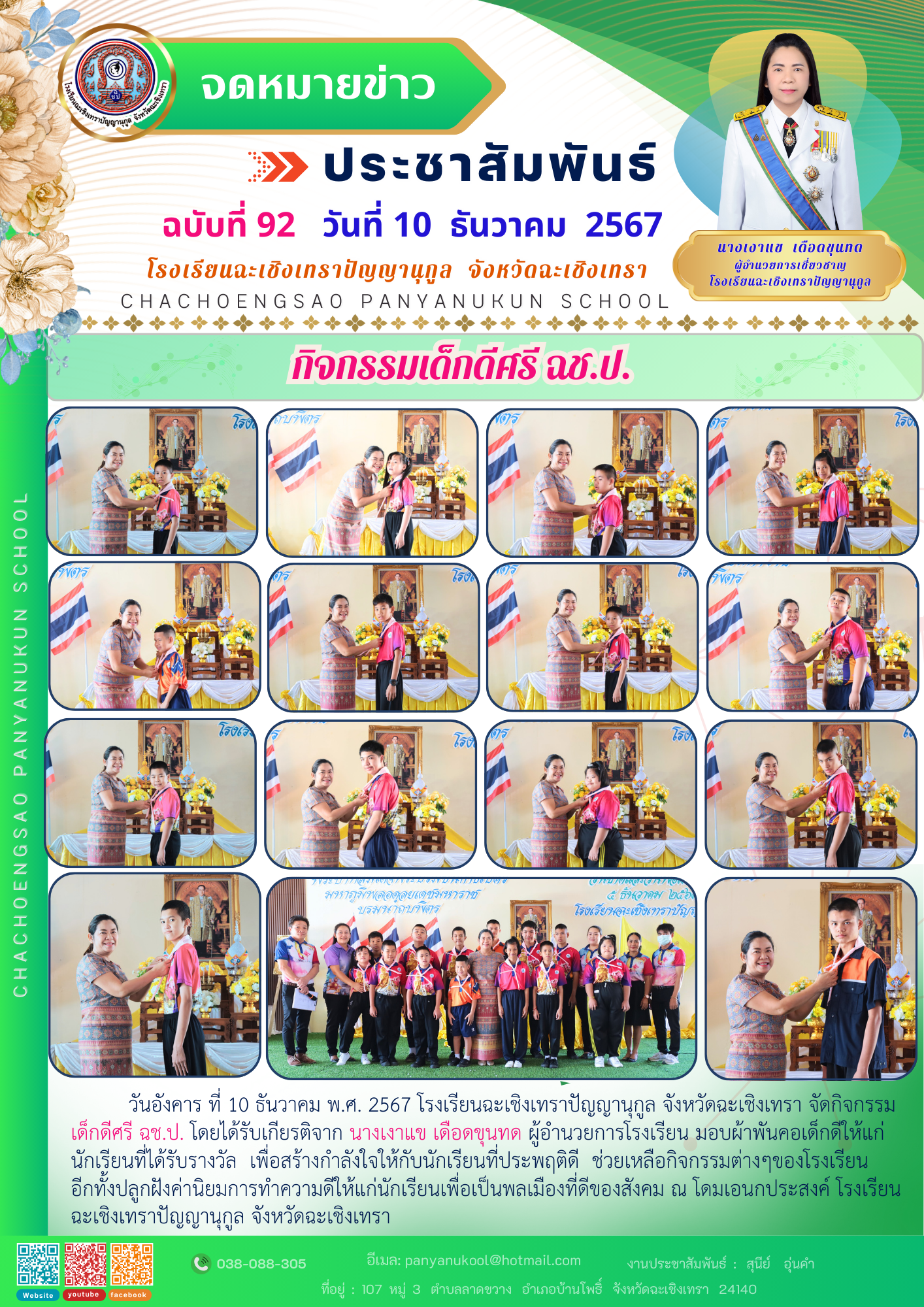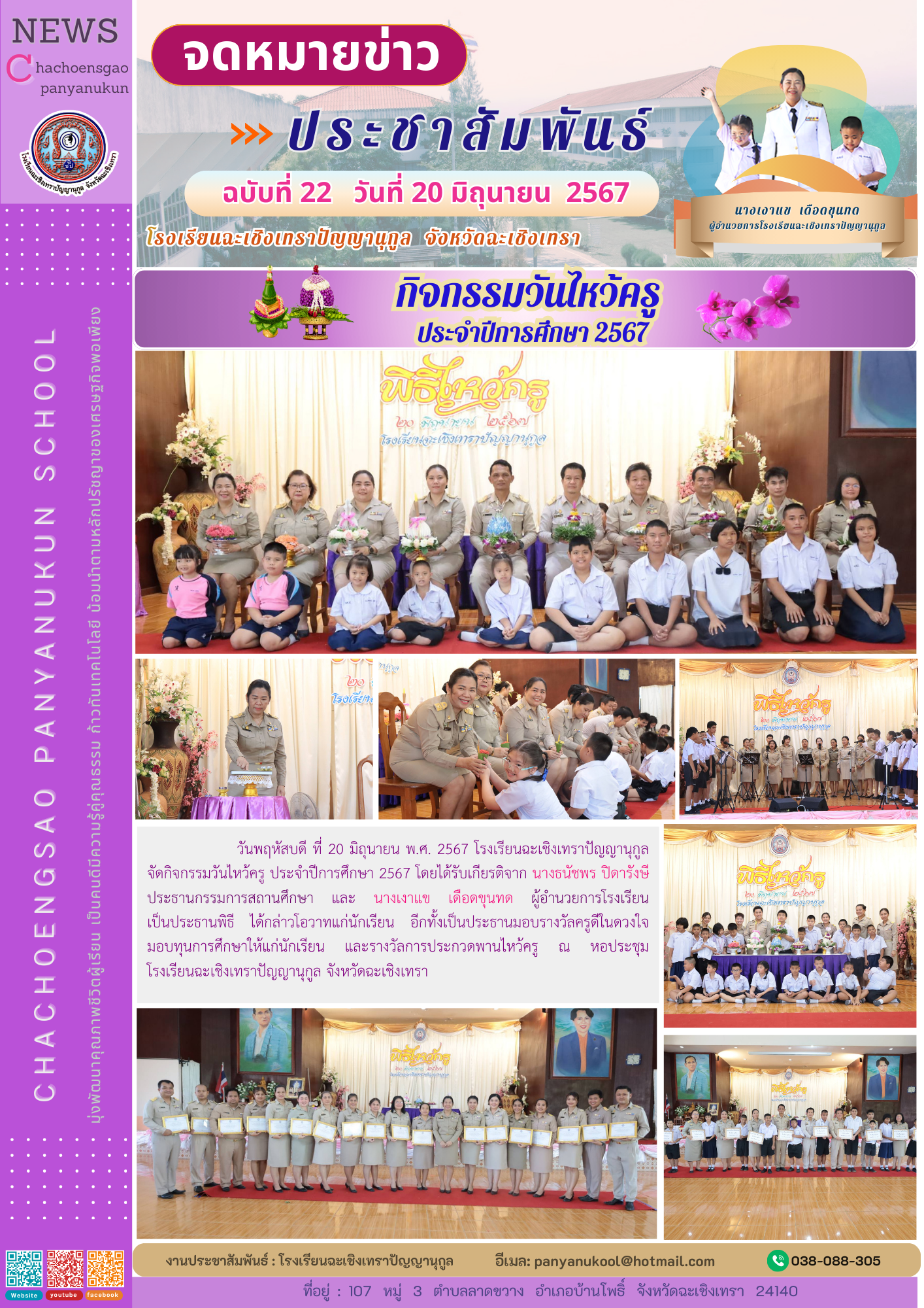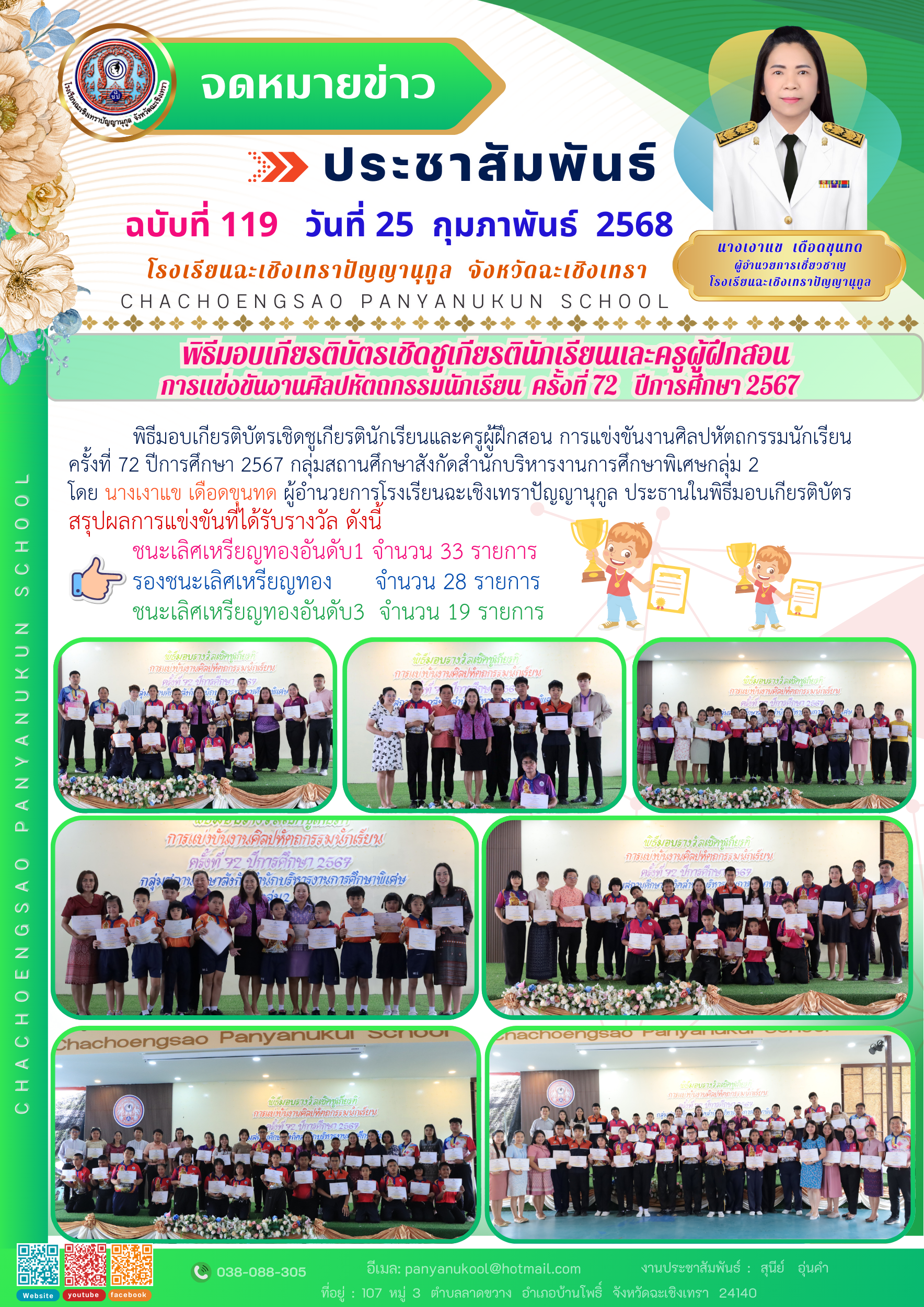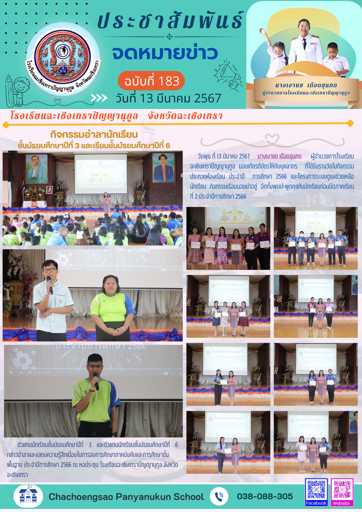 โรงเรียนฉะเชิงเทราปัญญานุกูล จังหวัดฉะเชิงเทรา ได้รับการคัดเลือกจากกระทรวงศึกษาธิการ