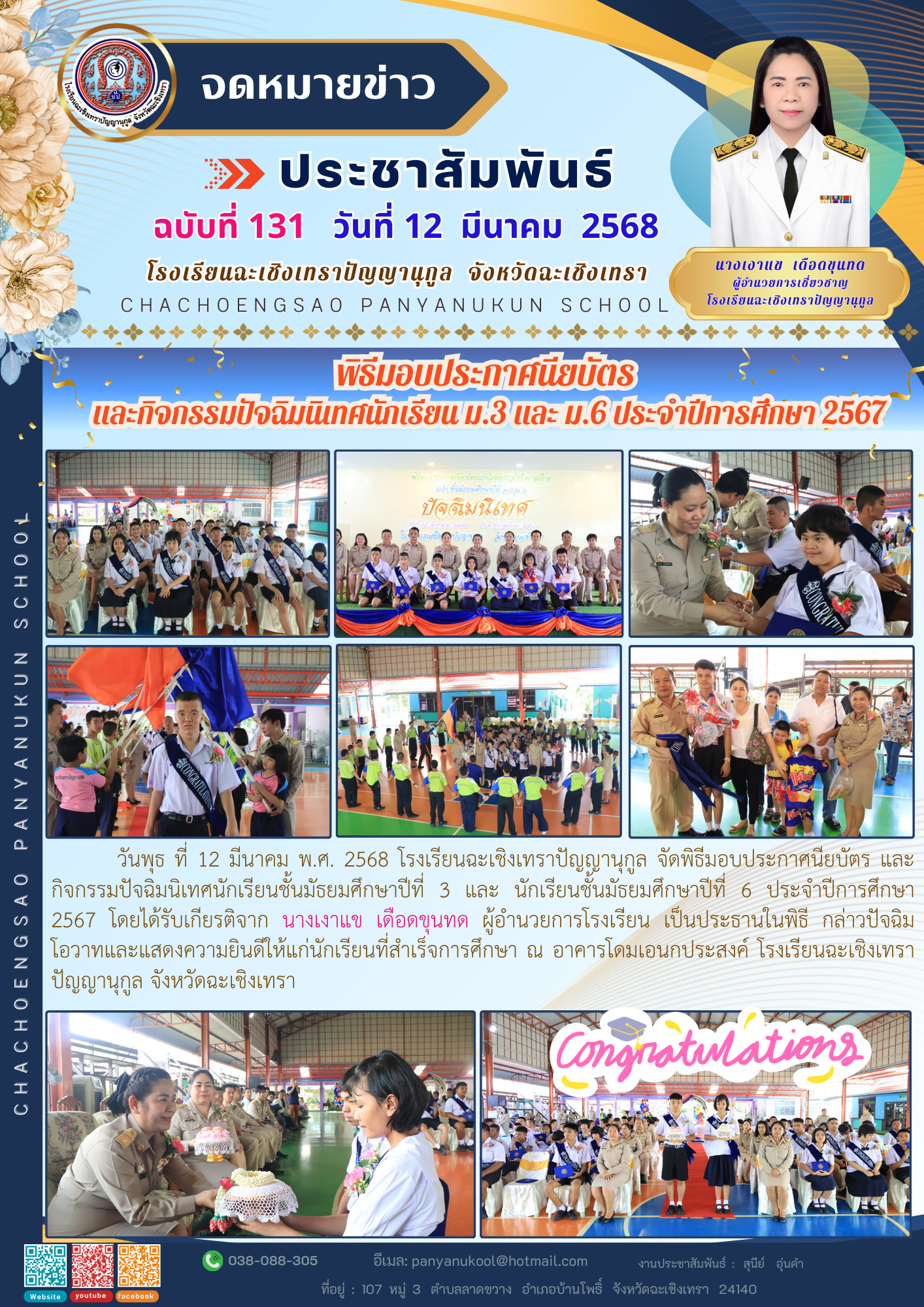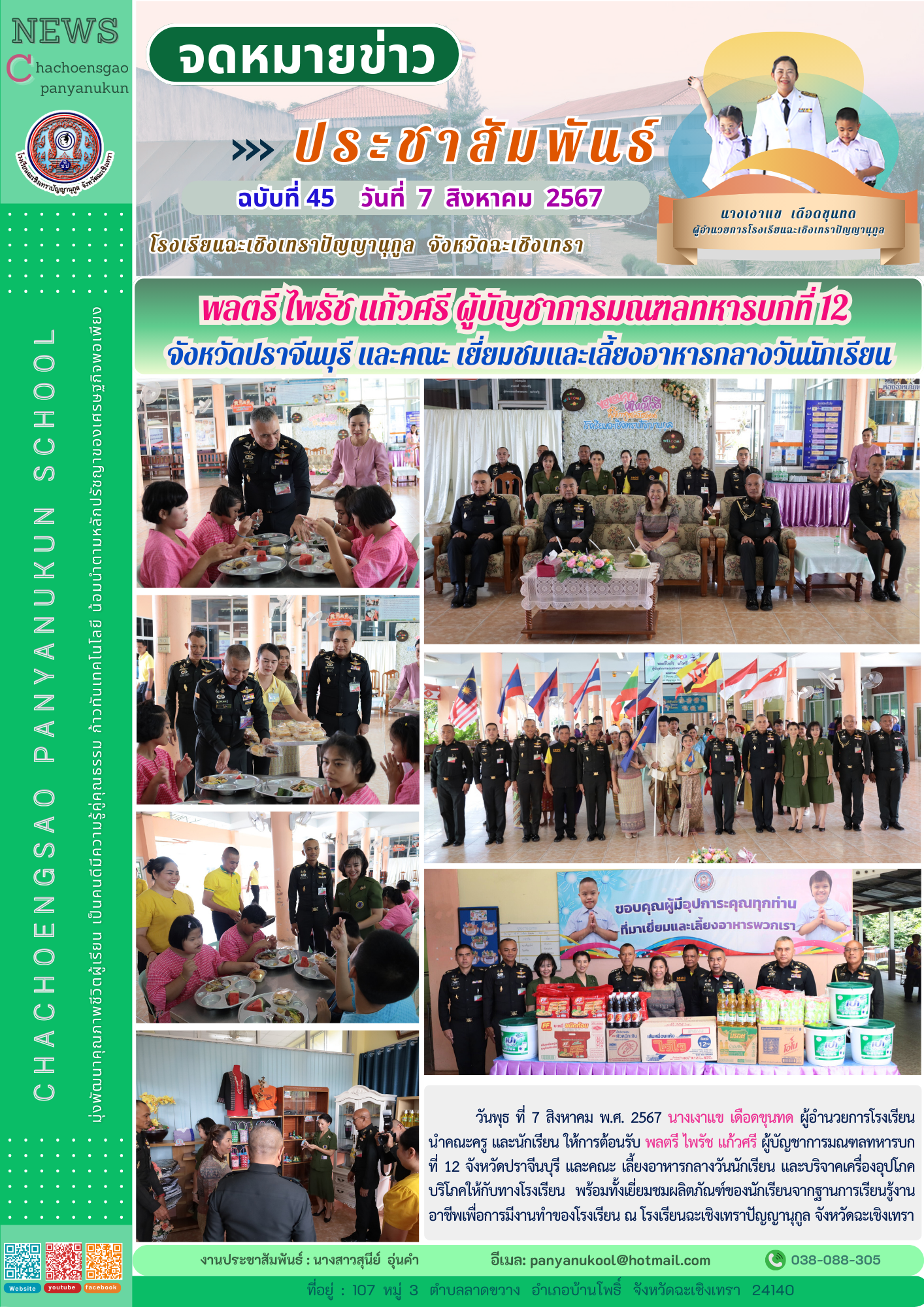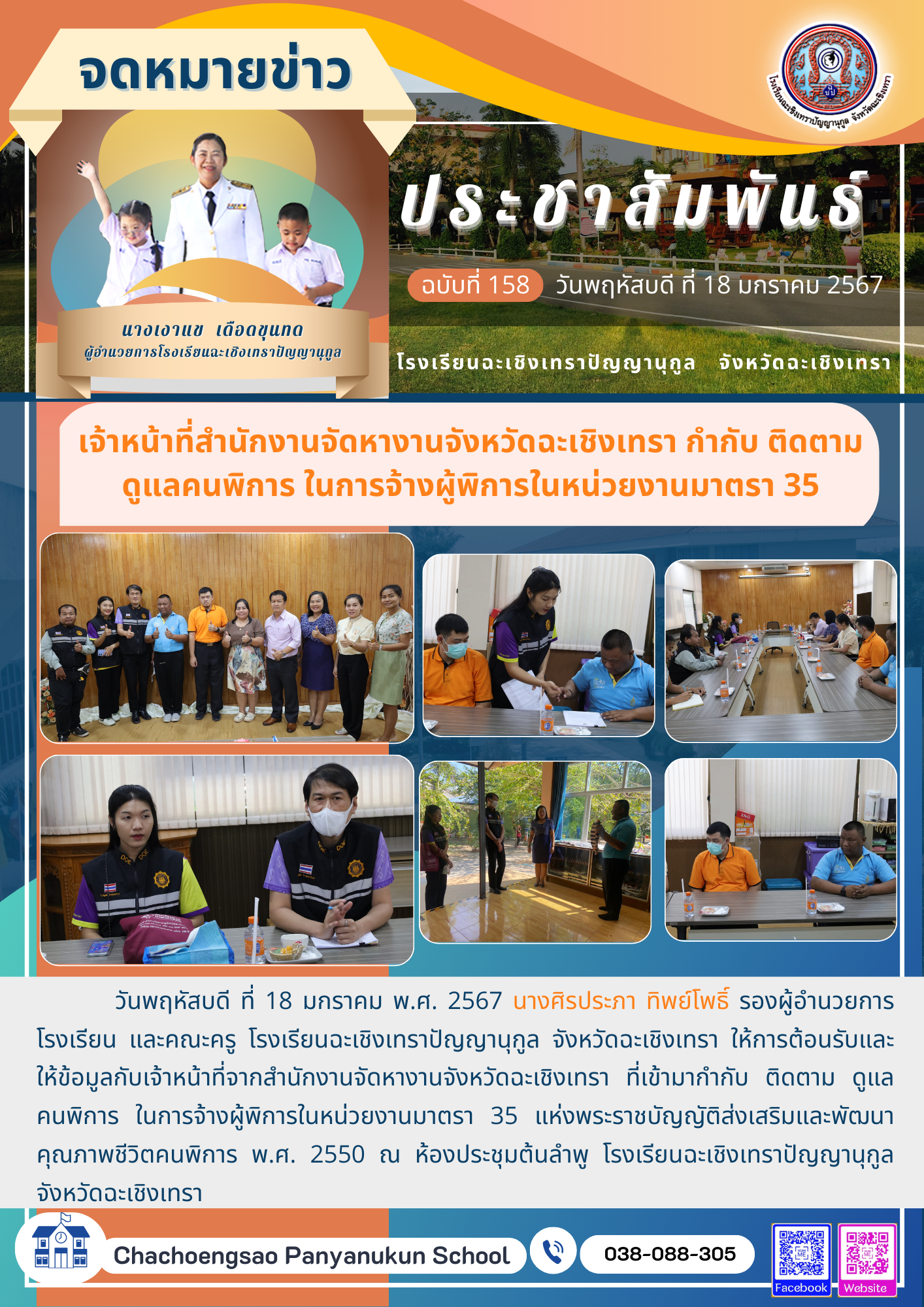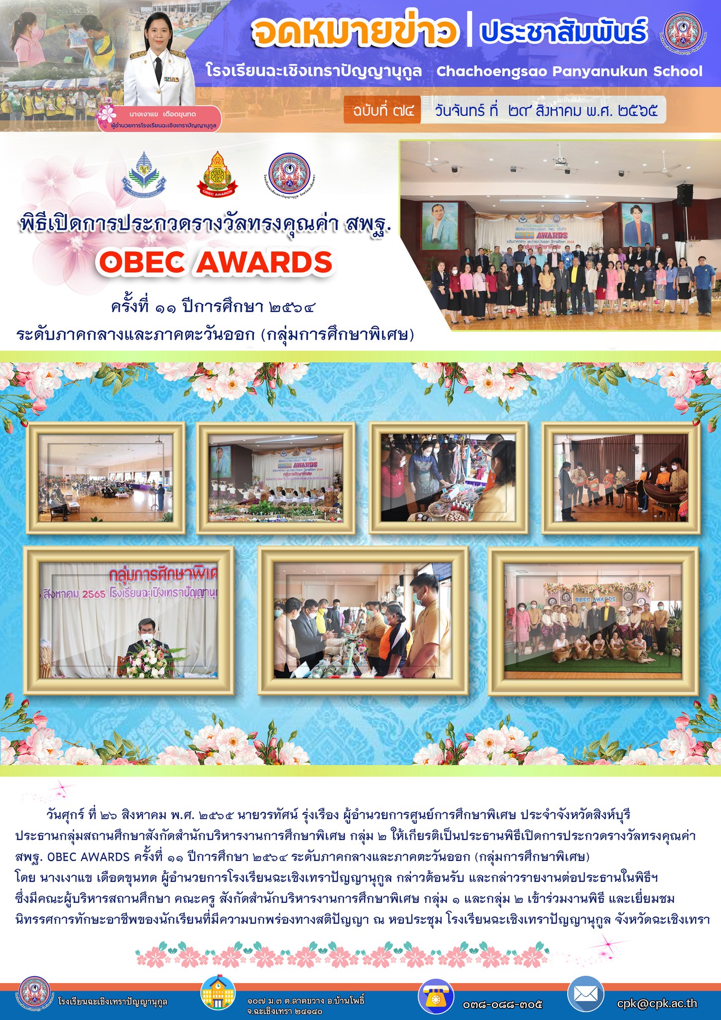 โรงเรียนฉะเชิงเทราปัญญานุกูล จังหวัดฉะเชิงเทรา ได้รับการคัดเลือกจากกระทรวงศึกษาธิการ