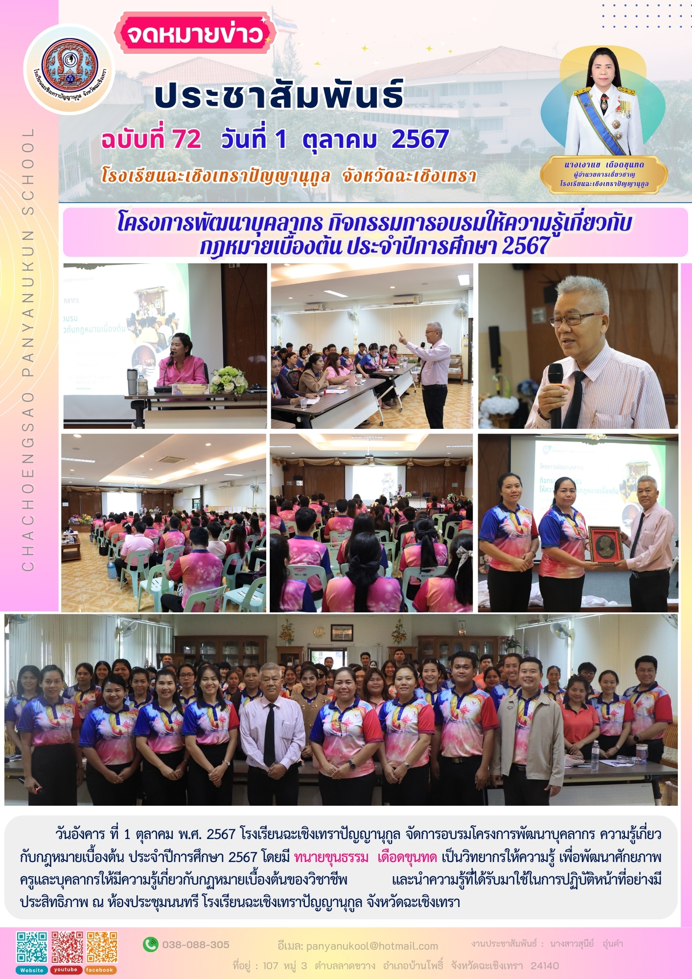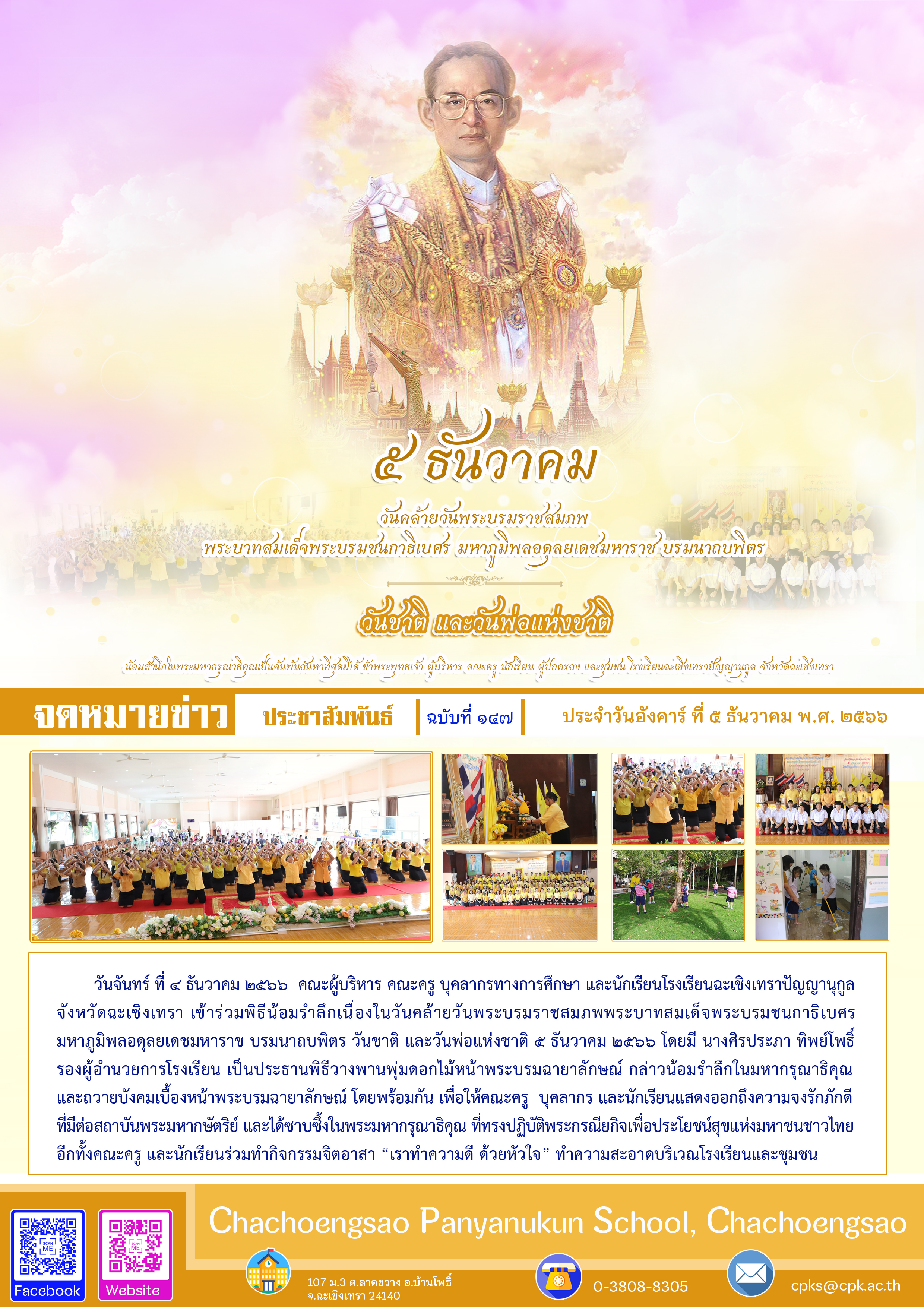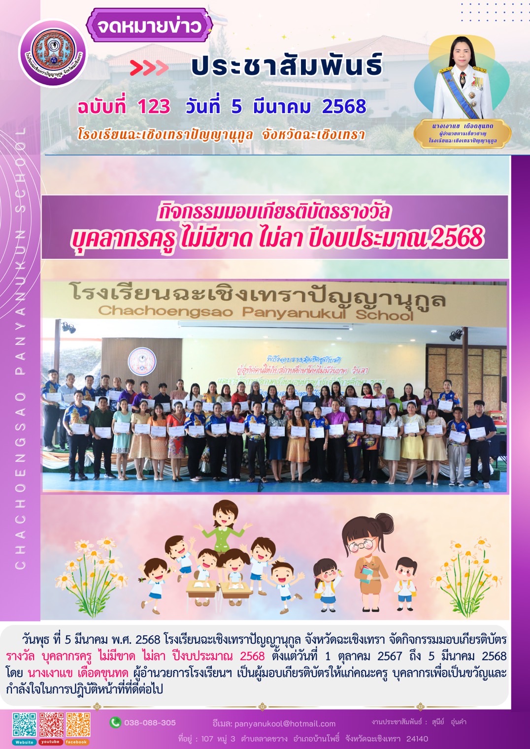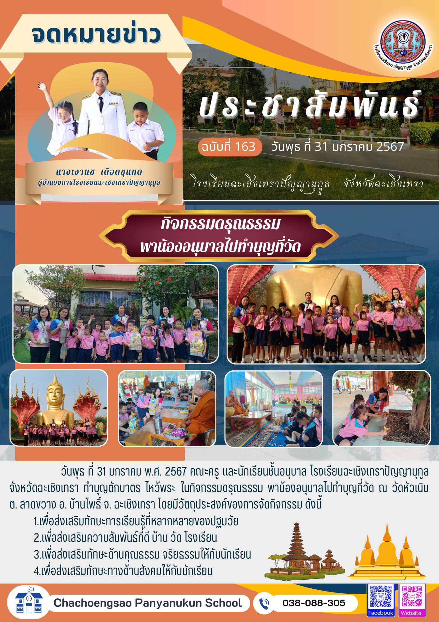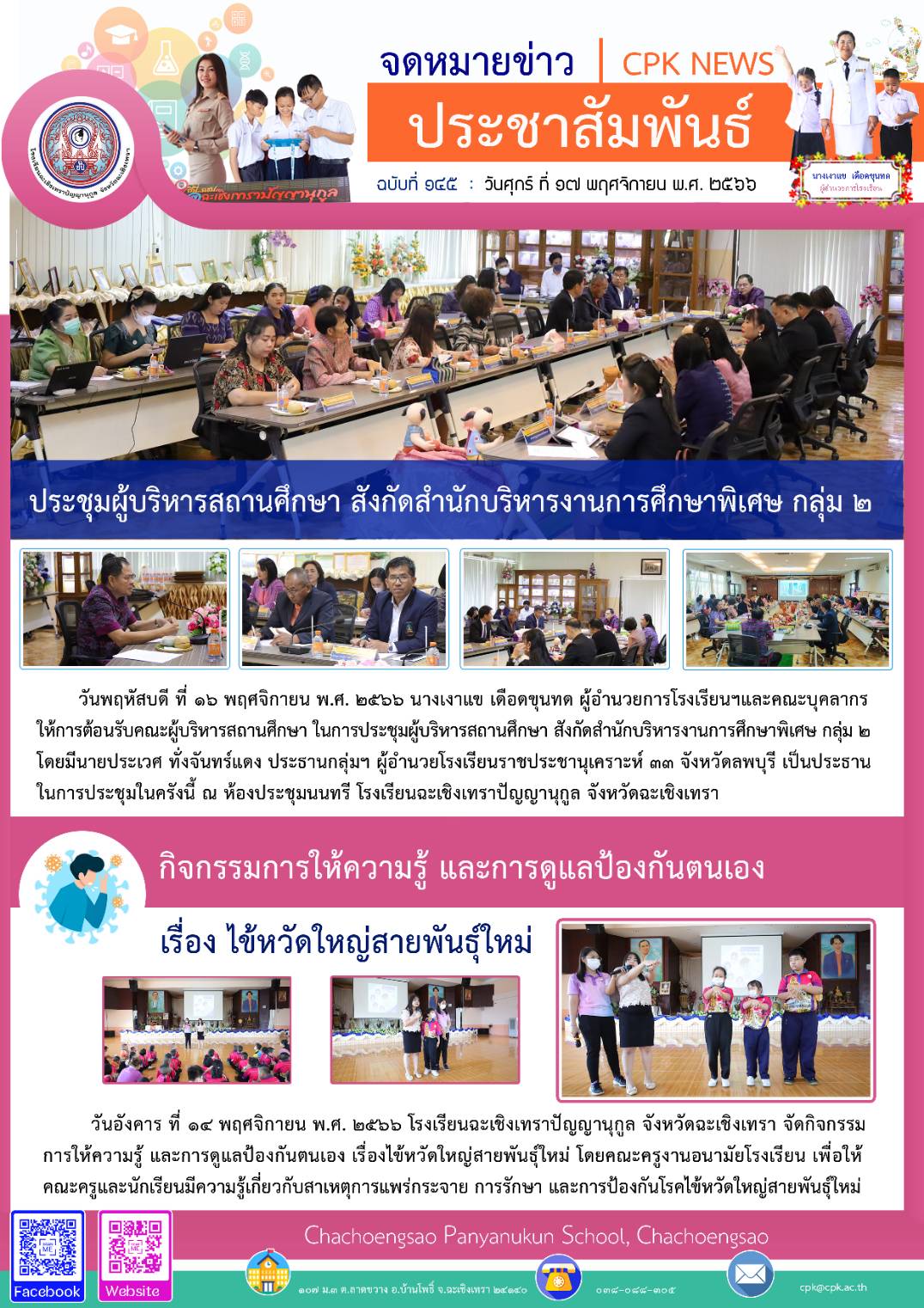 โรงเรียนฉะเชิงเทราปัญญานุกูล จังหวัดฉะเชิงเทรา ได้รับการคัดเลือกจากกระทรวงศึกษาธิการ
