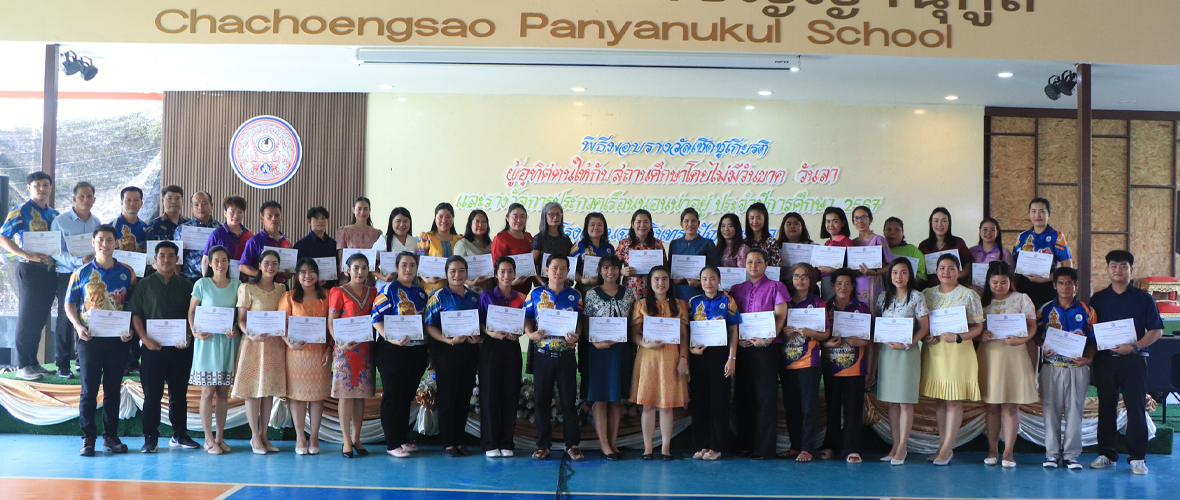 วันพุธ ที่ 5 มีนาคม พ.ศ. 2568 โรงเรียนฉะเชิงเทราปัญญานุกูล จังหวัดฉะเชิงเทรา จัดกิจกรรมมอบเกียรติบัตรรางวัล บุคลากรครู ไม่มีขาด ไม่ลา ปีงบประมาณ 2568 ตั้งแต่วันที่ 1 ตุลาคม2567 ถึง 5 มีนาคม 2568 โดย นางเงาแข เดือดขุนทด ผู้อำนวยการโรงเรียนฯ เป็นผู้มอบเกียรติบัตรให้แก่คณะครู บุคลากร