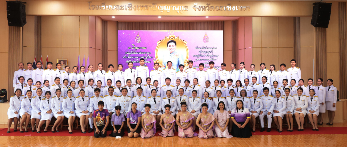 วันศุกร์ที่ 30 พฤษภาคม พ.ศ. 2568 โรงเรียนฉะเชิงเทราปัญญานุกูล จังหวัดฉะเชิงเทรา จัดพิธีถวายพระพรชัยมงคล เนื่องในโอกาสวันเฉลิมพระชนมพรรษา สมเด็จพระนางเจ้าสุทิดา พัชรสุธาพิมลลักษณ พระบรมราชินี 3 มิถุนายน 2568 โดยมีนางเงาแข เดือดขุนทด ผู้อำนวยการโรงเรียนฯพร้อมด้วยคณะผู้บริหาร ข้าราชการครูและบุคลากรทางการศึกษา นักเรียน ผู้ปกครอง และชุมชนโดยรอบ ร่วมพิธีถวายพระพรชัยมงคล โดยถวายเครื่องราชสักการะ (พานพุ่มเงิน-พุ่มทอง) หน้าพระฉายาลักษณ์ เพื่อเป็นการร่วมแสดงความจงรักภักดี และสำนึกในพระมหากรุณาธิคุณอันหาที่สุดมิได้ ณ ห้องประชุมแก้วกัลยา โรงเรียนฉะเชิงเทราปัญญานุกูล